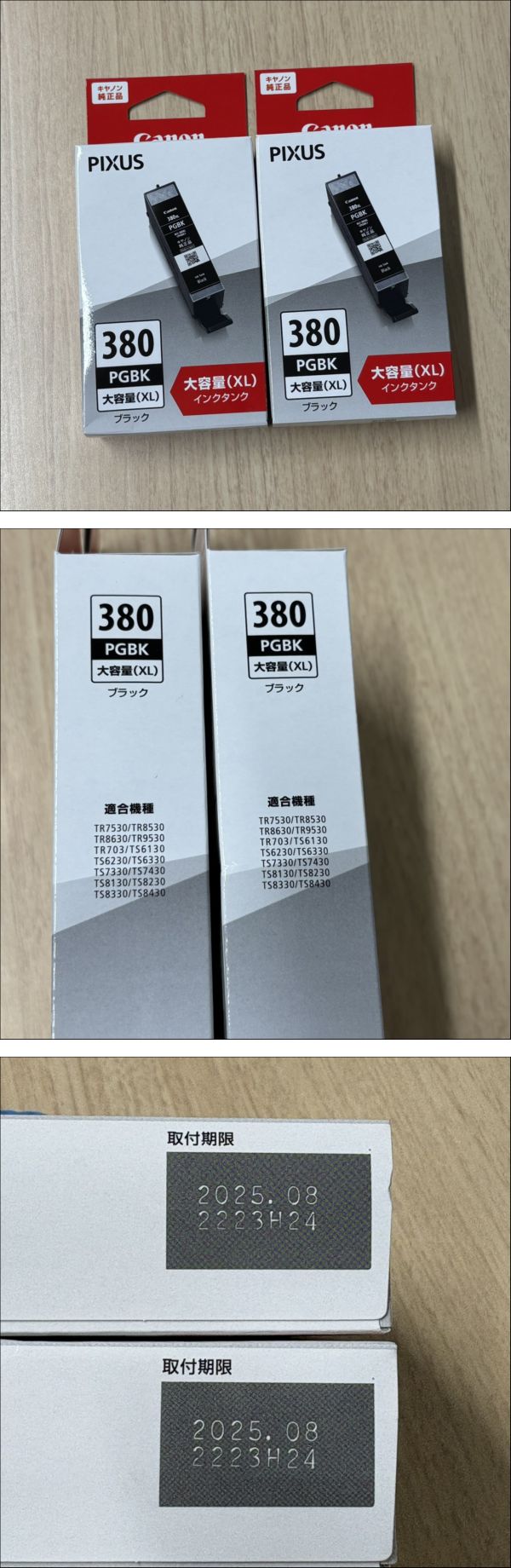 | 商品説明 | 商品説明 キャノン純正 380 BK 大容量 カートリッジ 2個セット ■型番:BCI-380XL PGBK ■カラー:ブラック 外箱汚れあり 期限については202507と202508の混在 発送について クリックポスト 店舗住所 埼玉県三郷市戸ケ崎2-794 お問い合わせについて web-shop@poweroffice.co.jp 048-948-2180 月曜~金曜 10:00~18:00 ※土日・祝日は店休日です 領収書について PDFで対応させていただきます 必要な方は落札時に取引ナビより、宛名・メールアドレスと共にご依頼ください |