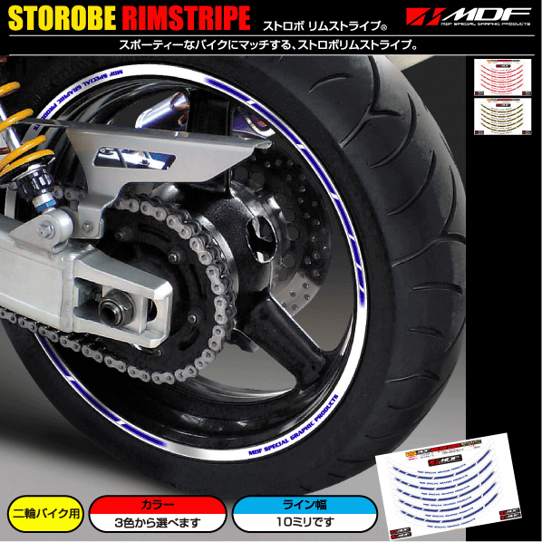 | ●デザインタイプ・・・・ストロボタイプデザイン(ストロボパターンのリムストライプです) ●ライン幅・・・・・・・10mm幅 (6mm幅をご要望の方は、【 エムディーエフオフィシャル ストロボ 6mm 幅 】で検索してください) ●カラータイプ・・・・・パンプキンイエロー、ブルー、レッドの3色からお選び頂けます ●適合ホイールサイズ・・8~21インチまでお客様のバイクに合わせて選択できます(前後インチ違いにも対応) ●セット内容・・・・・・前後ホイール車両1台分のリムストライプ(予備2本付属) |