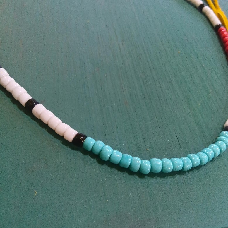 新品 オリジナル 高級鹿革ひもとガラスビーズを組み合わせた、ネックレスです。 ビーズサイズ:約4X5,5mm ビーズ部分長さ:約49~50cm 鹿革ひも:約100cm