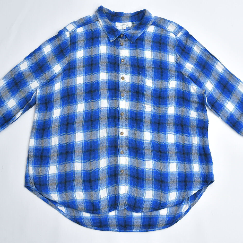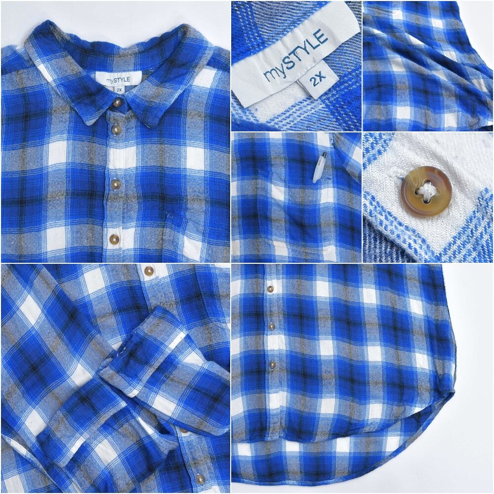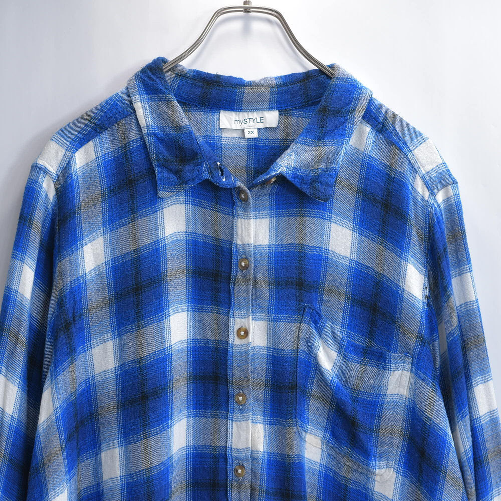 00s~ mySTYLE オンブレチェック レーヨンシャツ シャドーチェック 総柄 ヴィンテージ 長袖 ブルー ビンテージ USA アメリカ古着 レディース XL サイズ相当| 出价者 | 信用 | 价格 | 时间 |