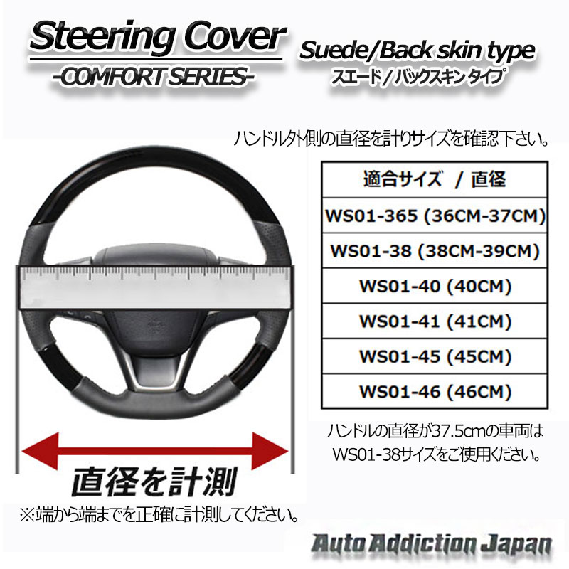 お手軽ドレスアップの必須アイテム、ステアリングカバー。 普通車から中型、大型トラック、商用バンまで幅広くサイズをご用意しました。 【かんたん装着】 純正ステアリングを外さずに上からかぶせるだけの簡単装着。 運転席に座った際、まず目に付くのがステアリング。ステアリングカバーは純正ステアリングを一瞬でかっこよくオシャレに変えてくれます。 そして見た目が良くなるのはもちろんのことですが、装着して使うにつれてハンドルが握りやすくなり、楽に車の操作が出来、見た目と実用性を兼ね備えたドレスアップアイテムです。 【注意事項】 上記マッチングはメーカーの装着データに基づいておりますが、年式や仕様、エアバックの有無によって現車サイズが異なる場合がございます。 まれに中古車でご購入の場合、前オーナーがドレスアップ目的で他グレード流用装着をしていた場合も判別が困難です。必ず現車の直径を確認した上でご注文をお願い致します。 社外品のステアリングが装着されている場合は装着不可となります。 適合確認車両の直径が商品情報に記載されているときは お手元にある現車の寸法が確認車両と相違がないかご確認をお願い致します。 商品情報に直径サイズの記載がない時には、推奨商品サイズが現車の寸法に当てはまるかを現車確認の上、ご購入をお願い致します。 ※車種、年式、型式等でステアリングの大きさが変わる可能性がございますので、ご購入の前に必ずご自身でステアリングの外径を計測してください。 未確認によるサイズ違いでの商品交換は承っておりません、またサイズが違うものを装着されての誤った運転等による事故などには一切の責任は負えませんこと予めご了承ください。 | |||
