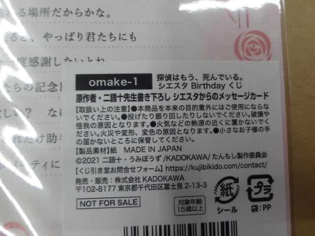 | くじ引き堂 探偵はもう、死んでいる。 シエスタ Birthdayくじ 10連セット購入特典 メッセージカード | |