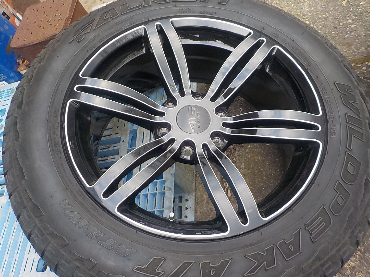 | ■業者宛送料安国産 トヨタ ランクル250 ブラポリ20インチアルミA/Tタイヤ4本セット 8.5J+34 139.7/6 265/60-20 2021年製■京都発 ★国産 トヨタ ランドクルーザー 250 300 などに★ 国産トヨタ ランクル250 バッドラッカー コブラ415 ブラックポリッシュ 20インチタイヤ付き 8.5J-20 インセット34 PCD139.7 6穴 ハブ径106 1本1/4周くらいリムガリ傷タッチペン修正あり 3本も軽い傷有 265/60-20 ファルケン WILDPEARK A/T AT3WA 2021年製 7ミリ山 ノーマルフェンダーはタイヤが15ミリ程度出ます M14ナット24個付属 25031701 送料は200サイズ4個口の金額になります 個人宅配送不可商品 送り先が個人宅の場合の発送は 西濃運輸営業所止となります