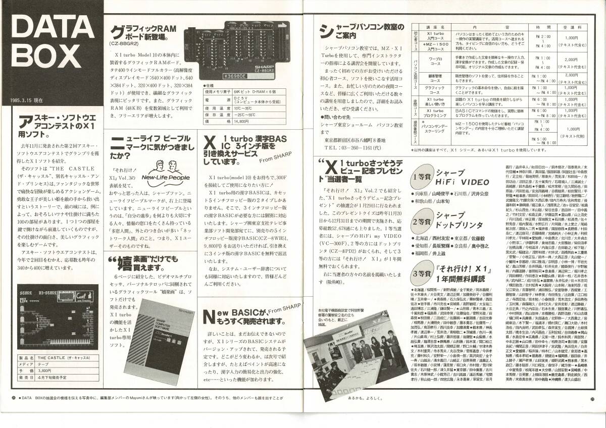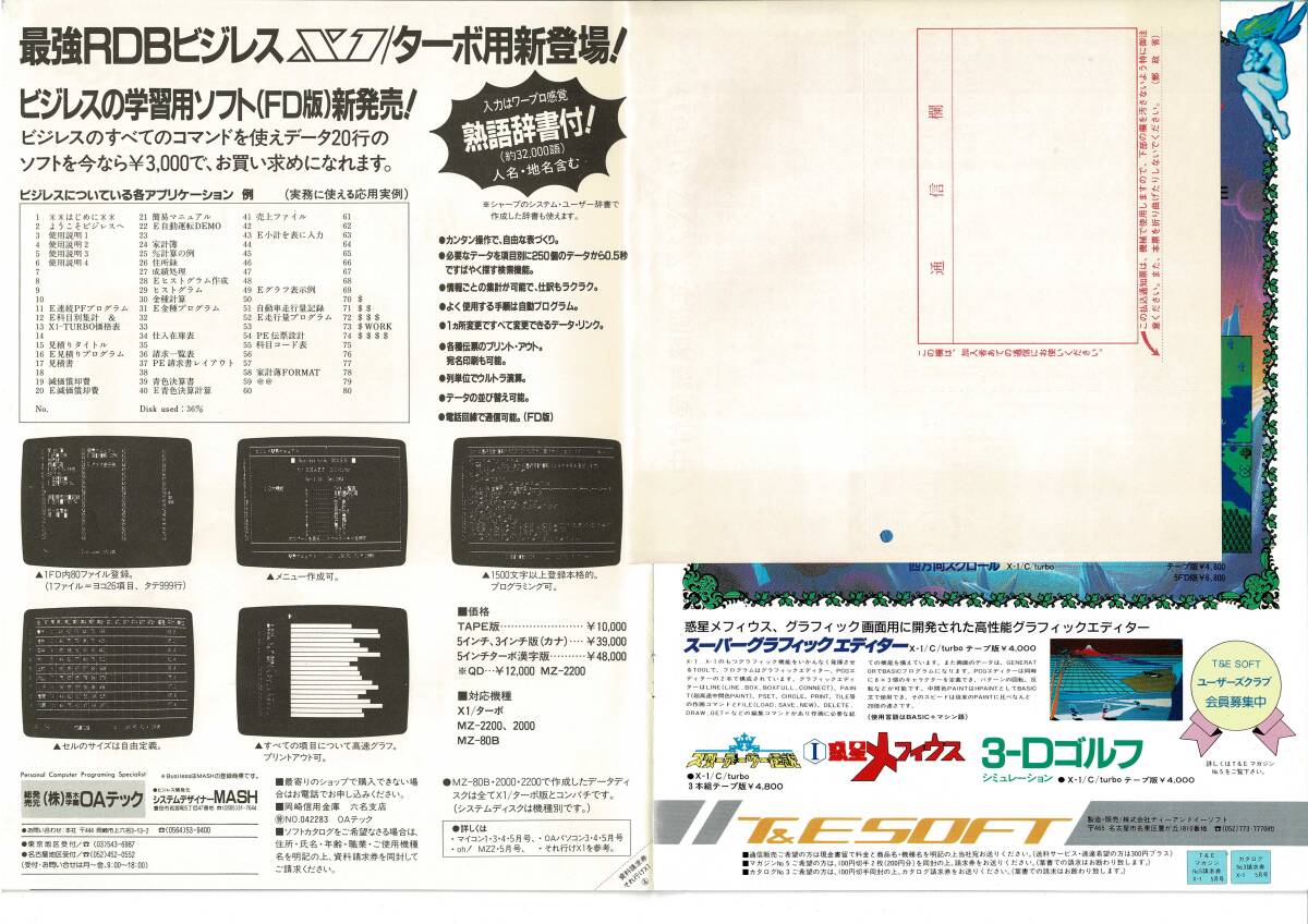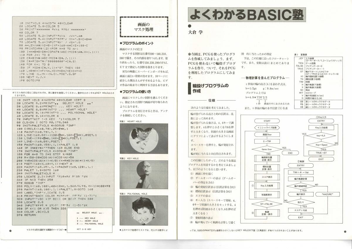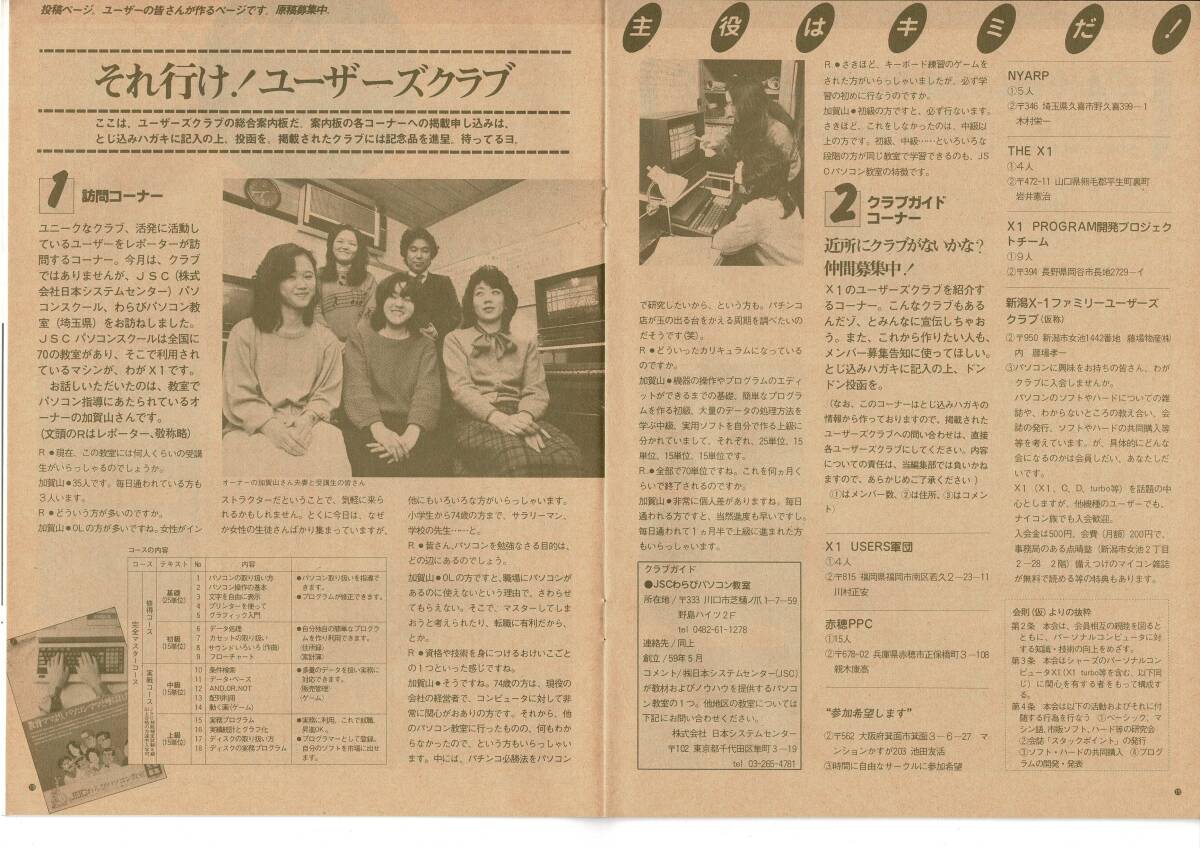 それ行け!X1Vol. 4,1985_昭和60年 4月 1日 隔月刊,BASIC塾 大倉学,畠中兼司,小谷善行,渡部健司,関谷日出男,清水保弘 発売日 1985_昭和60年 4月 1日 隔月刊 発行 シャープ 大きさ A4 バックナンバー申込用紙,アンケートハガキ付 X1コミュニケーションマガジン 表紙の写真は、 一部合成写真です。 それ行け! X1 1985 Vol.4 もくじ 特集 パソコン&ビデオ 3 ●X1を本格的なビデオ編集機器に、 ビデオマルチプロセッサとパーソナルテロッパ。 ●X1が映像機器として活躍。 ●重宝するビデオ編集用ショートプログラム。 よくわかるBASIC塾 ●大倉学 13 PCGを使って、簡単なゲームを作ってみます。 TALK & TALK 17 すぐ聞け、 すぐ書け、すぐ話せ。 それ行け! ユーザーズクラブ 18 クラブ訪問コーナー クラブガイドコーナー こんな使い方を知っていますか 20 エラーメッセージを変える方法。 PUZZLE BOX ● 小谷善行 21 BOOK REVIEW 21 PROGRAM BOX 22 オセロゲーム VIコーナー●畠中兼司 24 実戦!!マシン語入門 ●清水保弘 25 マシン語をこれから学ぼうという人は、ここさえ読めば、 入門OK。 DATA BOX 28 WORD BOX 30 本書に出てくる難しい用語の解説。 編集後記 31 PUZZLE BOX [解答 ] 広告目次 宮崎マイコンショップ -32 シャープソフト開発部 -33 OAテック -34 T&E- -35 東海クリエイト -36 日本ソフトバンク出版部・ -38 写真上は渡部健司さんの作品、写真 中・下は関谷日出男さんの作品です。 31ページ 編集後記 古本です。 神経質な方の入札はご遠慮ください。 背表紙の一部(ホッチキス部分)や本の中等をセロテープで補修している本もあります。 経年による劣化(すれ、ヤケ、シミ、折れ、小さい破れ、汚れ等)があります。 落書き、ページ割れ,ページ抜け、見落とし等が、あるかもしれません。 気になる点などあれば、事前に質問して下さい。 この商品の発送後は、クレーム、返品は、お断り致します。