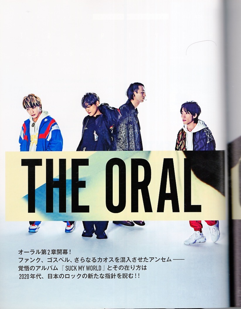 | <COVER STORY> THE ORAL CIGARETTES 昨年のデビュー5 周年&ベストアルバムのリリースを経て、第2 章へと自らのフェイズを進めることを表明したオーラル。新しいアルバム『SUCK MY WORLD』はまさにその宣言通り、バンドとして抜本的に大きな変化を遂げていくことを明確に示す作品に仕上がった。モダンなR&Bやファンク、ソウルやゴスペルの扉を開き、そこに挑戦していった本作は、一体どんなヴィジョンと想いの下に生み落とされたのか。鮮やかにその舵を切っていった山中拓也の単独インタヴューと、それを受け止め共に挑んだあきらかにあきら& 鈴木重伸&中西雅哉の3 者インタヴューの2 本立てにて、新たなディメンションを形成し始めたTHE ORAL CIGARETTES の現在地に迫る、2 度目の表紙巻頭特集! millennium parade 常田大希 King Gnu常田率いる革新と確信のプロジェクト、『Fly with me』にていよいよ本格攻勢スタート。チェロの音楽作品もリリース、止まるところをまったく知らない鬼才の現在を紐解く TK from 凛として時雨 様々なアーティストとコラボレートすることで、逆説的に自分自身を追い込み新たな音楽世界を拡張させたアルバム『彩脳』。開放と孤高、その豊かでスリリングなプロセスとは yonige 変わらないことを選ぶのではなく、変わることで自分自身の表現を鳴らし続けることを選んだyonigeの変化作にして深化作『健全な社会』。牛丸ありさが見つめ直した、その根幹 変態紳士クラブ それぞれに次世代のヒップホップ/レゲエを牽引しつつある新鋭WILYWNKAとVIGORMAN、そしてトラックメイカーGeGからなる、今年の台風の目となり得るユニットのリアル Moment Joon 2020年のヒップホップを代表する超重要アルバム『Passport & Garcon』。韓国からの移民であるラッパーが告発する差別と偏見、そしてひとりの人間としての痛みと信念を深く紐解く Gotch アジカンはもちろん、プロデュースワークや音楽シーン/社会へのアクションと精力的な活動を続ける後藤正文、3年ぶりとなるソロ新作『Nothing But Love』に見る音楽への想い Shohei Takagi Parallela Botanica cero髙城晶平によるソロプロジェクト、始動。奇しくもコロナ状況下にある今の世界とシンクロするデビューアルバム『Tryptich』に映し出された表現者としての本質と矜持に迫る go!go!vanillas 長谷川プリティ敬祐の復活後第1弾レコーディングとなるシングルにして、覚醒を遂げた『THE WORLD』以降の絶好調ぶりを高らかに証明する『アメイジングレース』のすべて Awesome City Club 創設メンバーの脱退と事務所&レーベルの移籍という激流を乗り越え、変わらぬアイデンティティを携えたままバンドとして抜本的な変化を遂げた意欲作をatagi&PORINに問う 赤い公園 新体制になって初のフルアルバム『THE PARK』、完成。この数年の中で芽生えたこのバンドにおける津野米咲の自我と、それと深く共振し歌に映す石野理子、ふたり取材実施 Age Factory 前作『GOLD』から一転、叙情性の強い内省的なオルタナティヴロックでこのバンドの新たな側面と芯にあるものを鮮やかに提示する『EVERYNIGHT』。清水エイスケが見据える今 ヒトリエ 突然のwowakaの死から1年、4人の歩みをコンパイルしたベストアルバム『4』リリース。ひとりの音楽世界がバンドとなり、新たな扉を開いていったドキュメントを振り返る ドミコ 得体の知れないものに触れる瞬間の興奮と快感。ロックの歴史を血肉化しつつも自分自身さえ予想し得ない世界を見るべく、探究と拡張を繰り返し続けるさかしたひかるの信条 Johnnivan どんぐりず ステレオガール VIVA LA ROCK 2020のお知らせ また、入江陽、カジヒデキ、BMI、the band apart、OKAMOTO’S、SiM、Shleeps、ART-SCHOOL、くるり、8otto、a flood of circle、Wienners、LITEら多くのミュージシャンも参加する大ヴォリュームのディスクレヴューも多数! 国民的マルチタレントの大泉洋、金井政人(BIGMAMA)、谷口鮪(KANA-BOON)、中野雅之(BOOM BOOM SATELLITES)といった豪華連載陣によるコラムも大充実!! <掲載アーティスト一覧> THE ORAL CIGARETTES、millennium parade 常田大希、TK from 凛として時雨、yonige、変態紳士クラブ、Moment Joon、Gotch、Shohei Takagi Parallela Botanica、go!go!vanillas、Awesome City Club、赤い公園、Age Factory、ヒトリエ、ドミコ、Johnnivan、どんぐりず、ステレオガール | ||