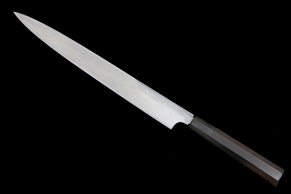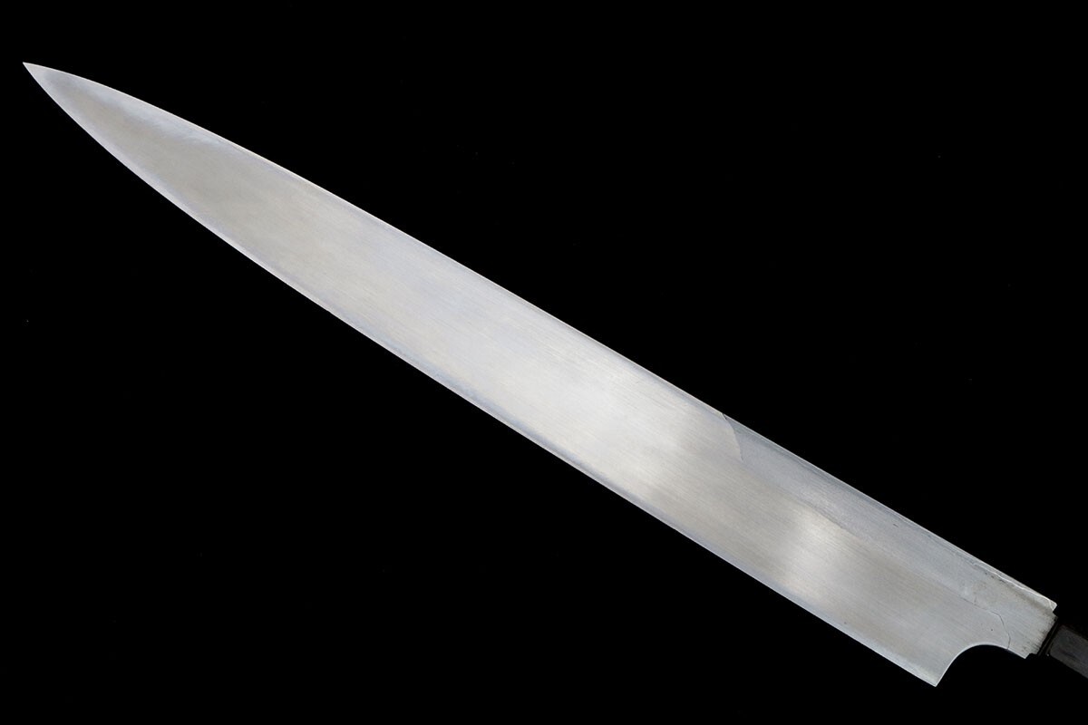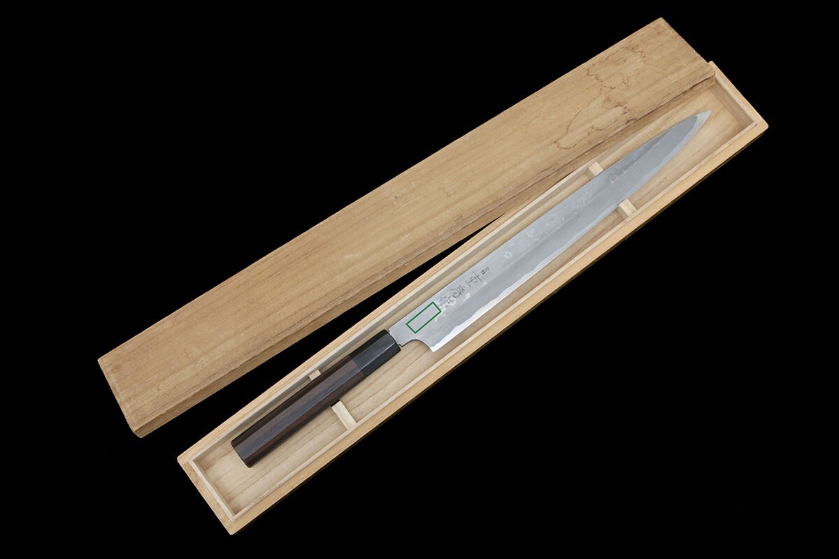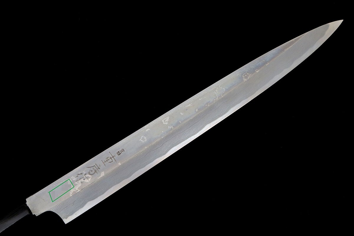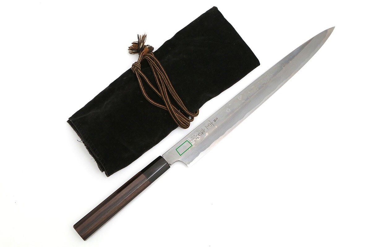 重房 柳刃包丁 墨流 尺一 黒檀柄 袱紗・箱付 名入