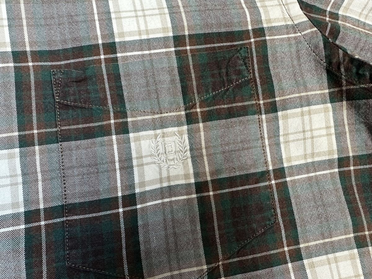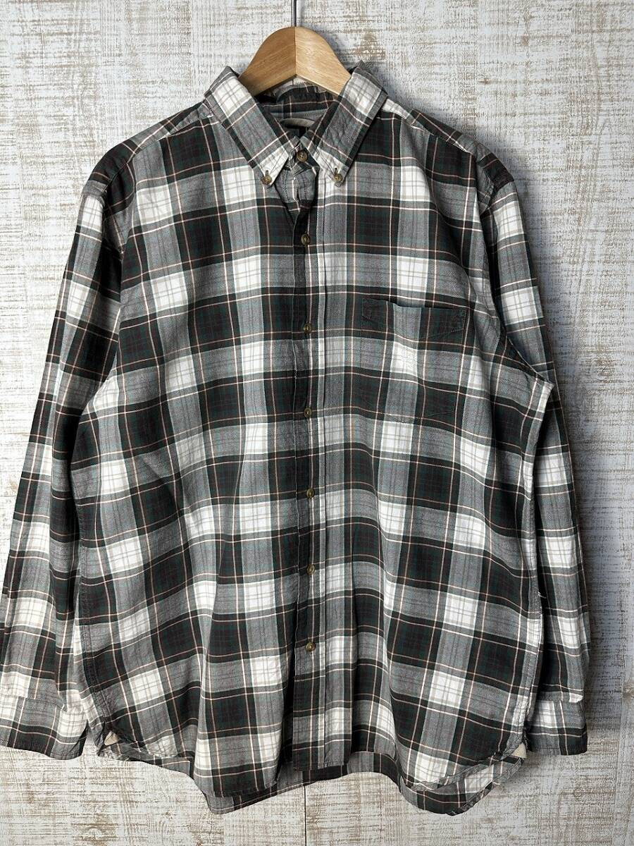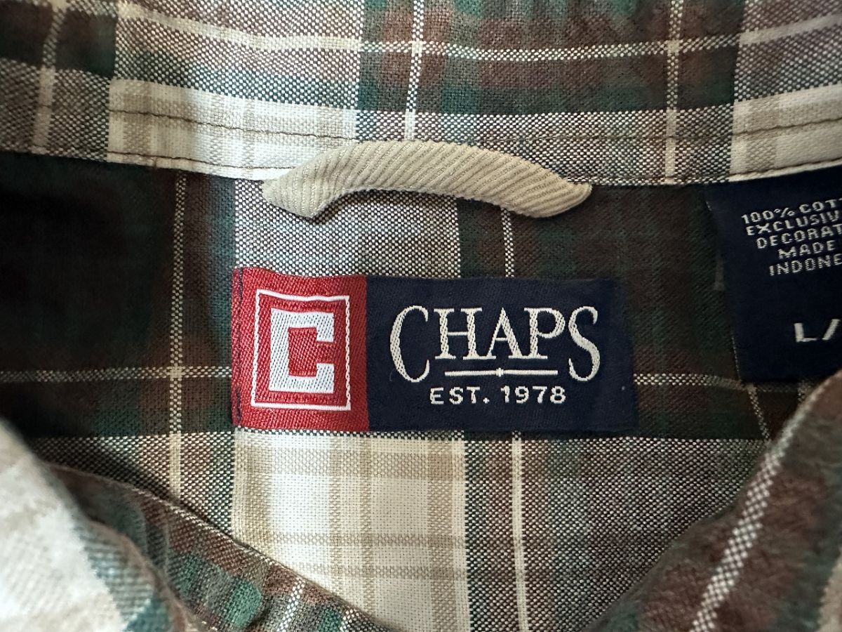 ●US USED CHAPS チャップス オックスフォードシャツ チェック柄 綿 長袖シャツ ロゴ刺繍 グリーン緑×白【L】コットン