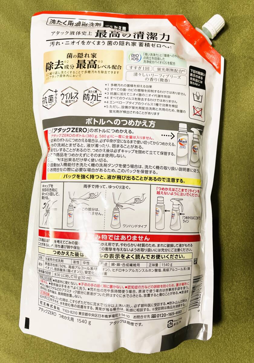 ■Attack ZERO アタックゼロ■超特大1540g(154回分)■大容量 洗たく用濃縮洗剤 つめかえ用■ | |||
