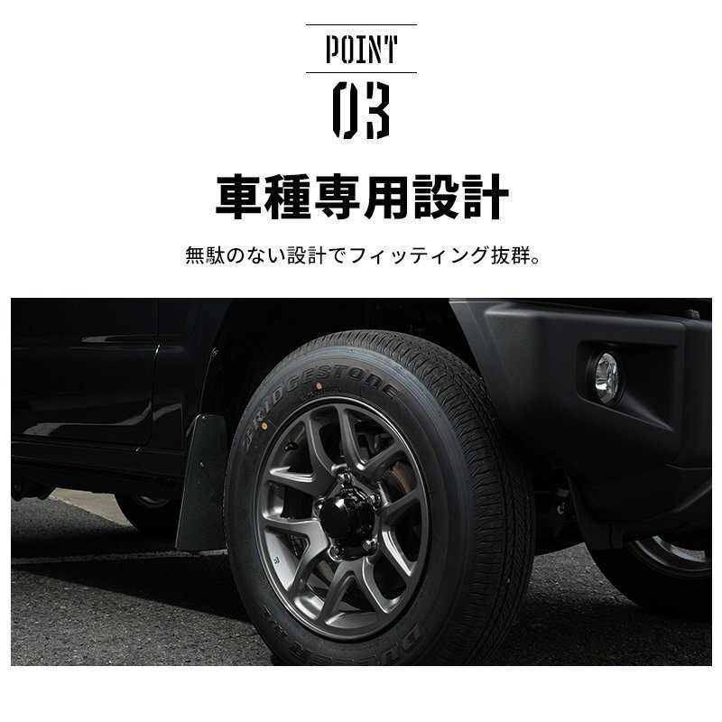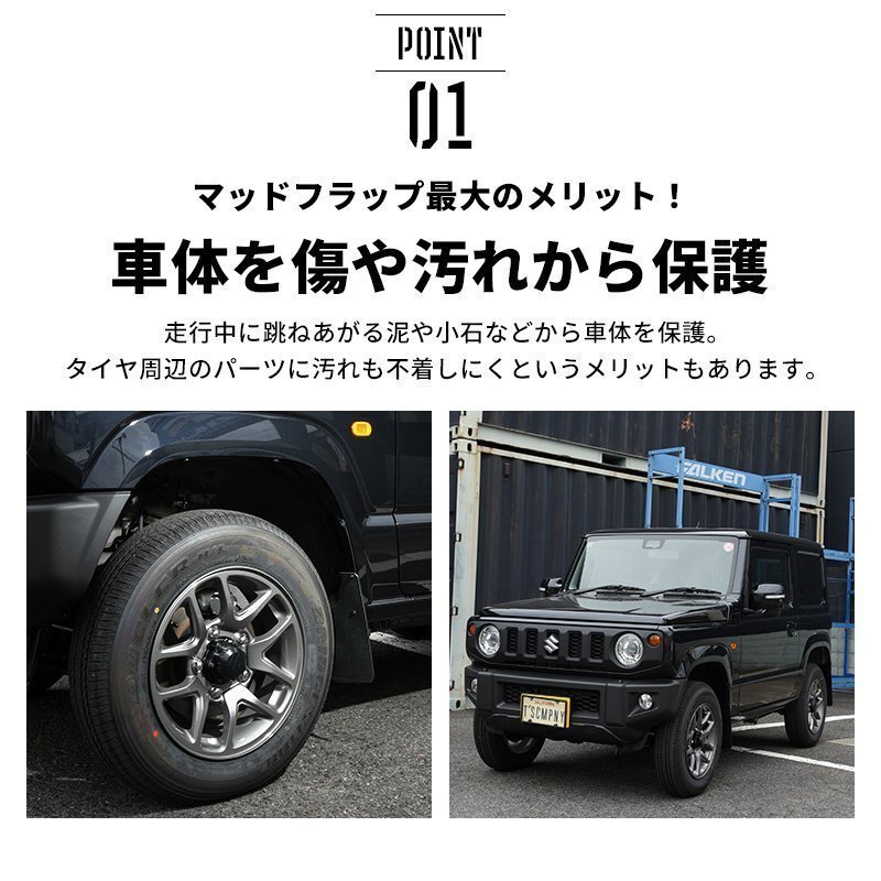 | 商品説明 | [商品名] ジムニー専用 マッドフラップ [セット内容] フロント2枚 / リア2枚 取付金具一式 [商品詳細] ■車体を傷や汚れから保護する 走行中に跳ねあがる泥や小石などから車体を保護。 タイヤ周辺のパーツに汚れも不着しにくいというメリットがあります。 ■ルックスの変化 無骨さを演出する【ブラック】 車本来の機能とマッドフラップの相性も良く マッドフラップ自体あまり見かけなくなったこともあり、 個性をアピールできるパーツになります。 ■車種専用設計 無駄のない設計でフィッティング抜群です。 【純正のマッドフラップ】と同形状の設計になります。 ■取り付けに関して バンパーに穴をあける必用があります。 取り付け説明書を商品と同梱してお送りしますので参考にしてください。 ※ご注意※ ・ジムニーシエラJB74Wには装着不可となります。 ・社外品につき、若干の小キズ、擦り傷がある場合がございます。予めご了承ください。 ・入荷時期により若干の質感が異なる場合があります。予めご了承ください。 |