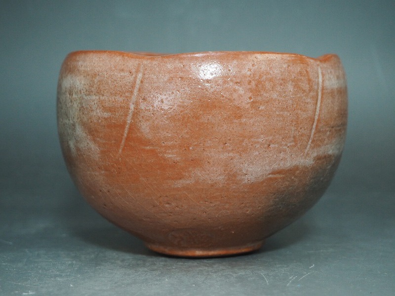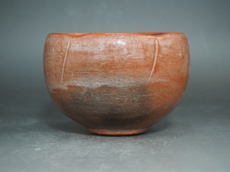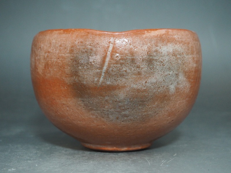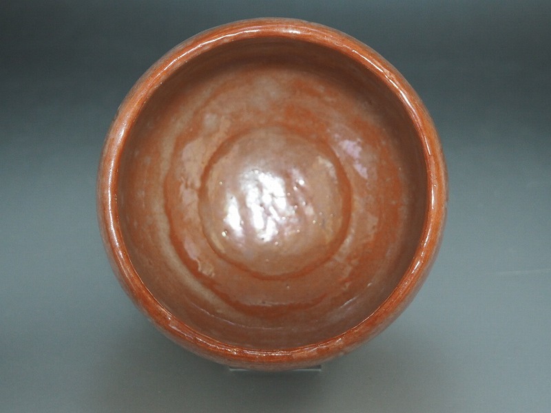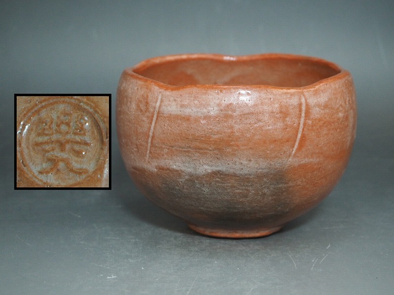 | A4522 楽焼 吉村楽入 作 赤楽茶碗 ☆ 茶道具 茶器 抹茶器 茶懐石 茶事 茶の湯 茶碗 楽茶碗 抹茶碗 陶器 作家物 在銘 陶印 美品 良品 無傷 | ||