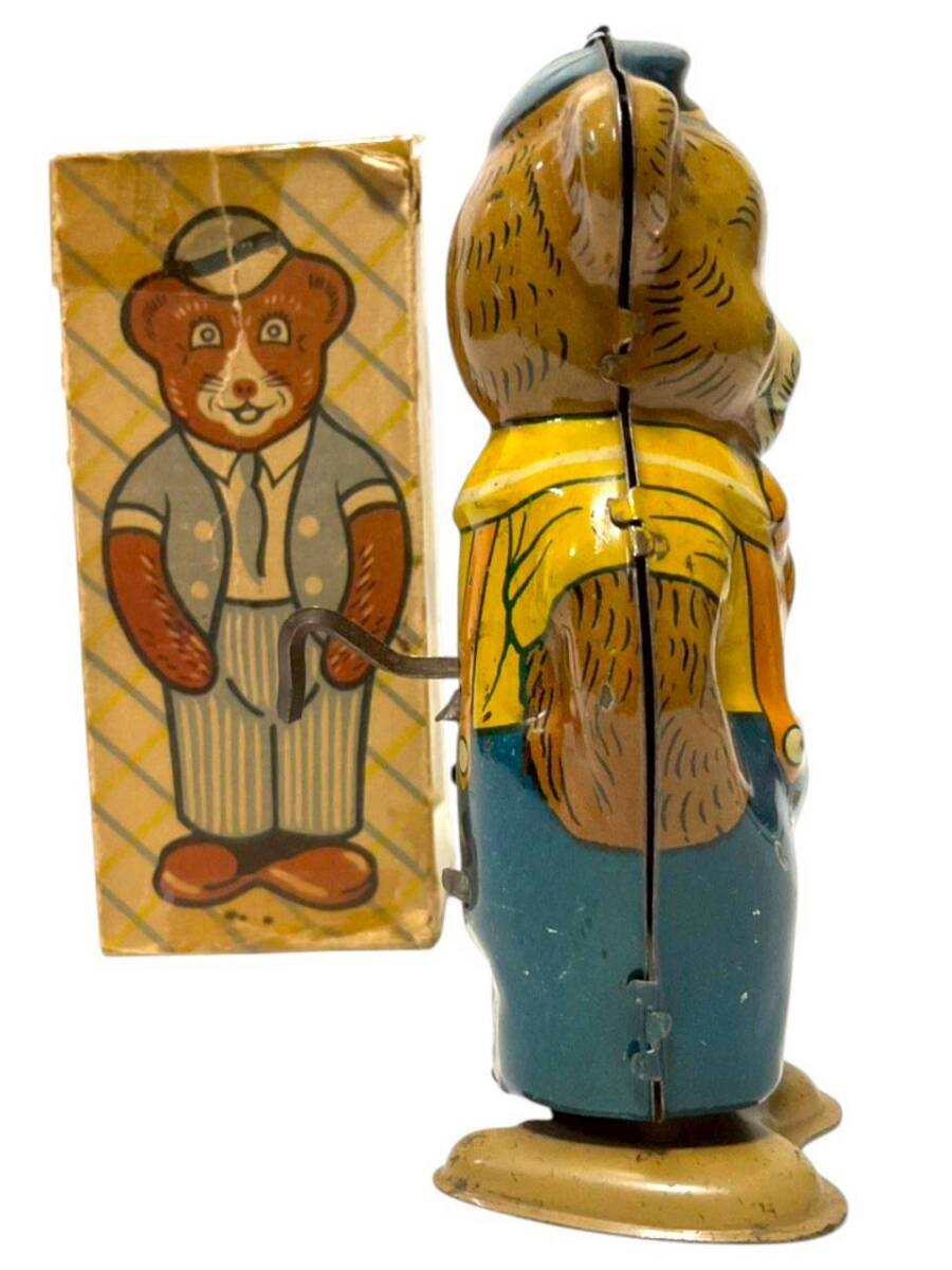 C7.【動作良好】希少 1950年代 メカニカルベア ゼンマイ ブリキ玩具 イギリス製 12cm [浏览原始页面]