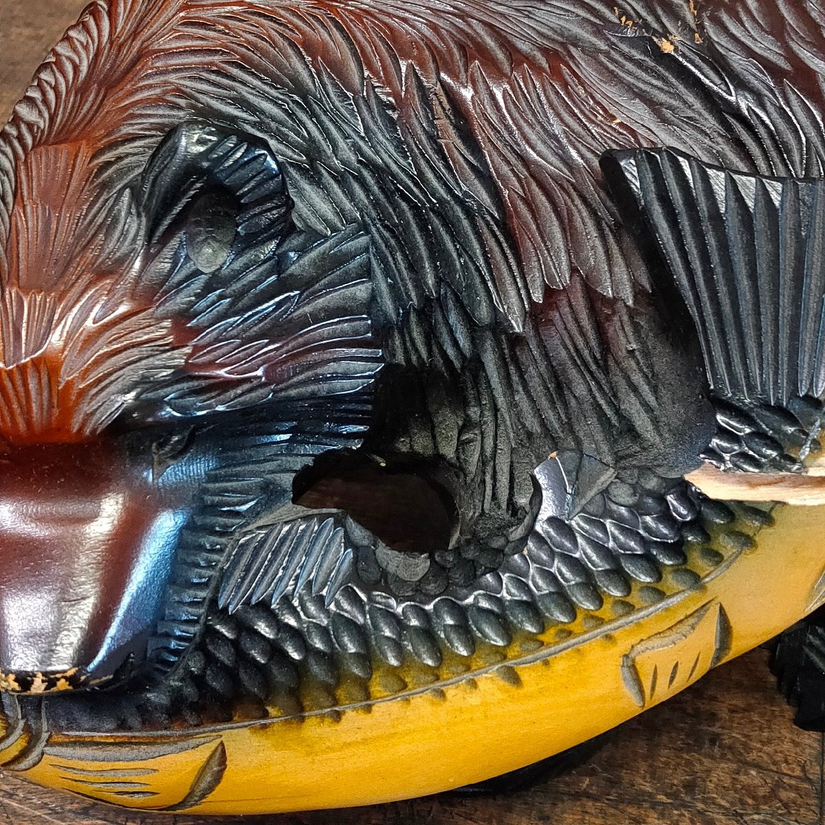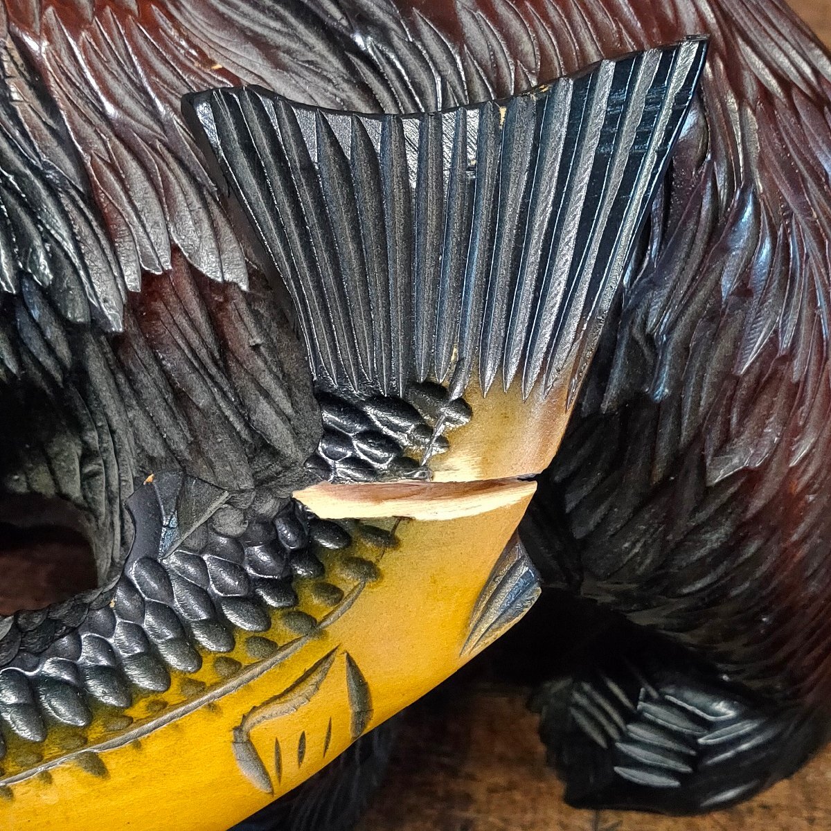 サイズ(約) 幅28㎝ 高さ20㎝ 奥行18㎝ 鮭の尾びれが破損しています。 中古品の為、傷や汚れ等あります。 ご検討宜しくお願い致します。 |