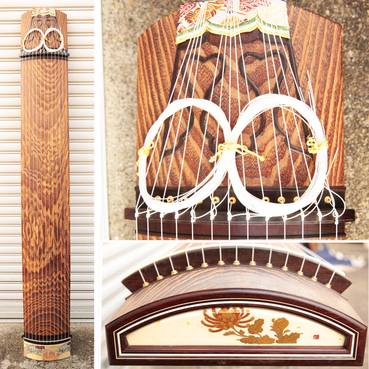 【最高級箏】伝統工芸品 福山琴 名工 小川賢三作 紅木玉縁 金蒔絵龍舌 子持綾杉彫 くり甲 購入150万お琴 | ||||