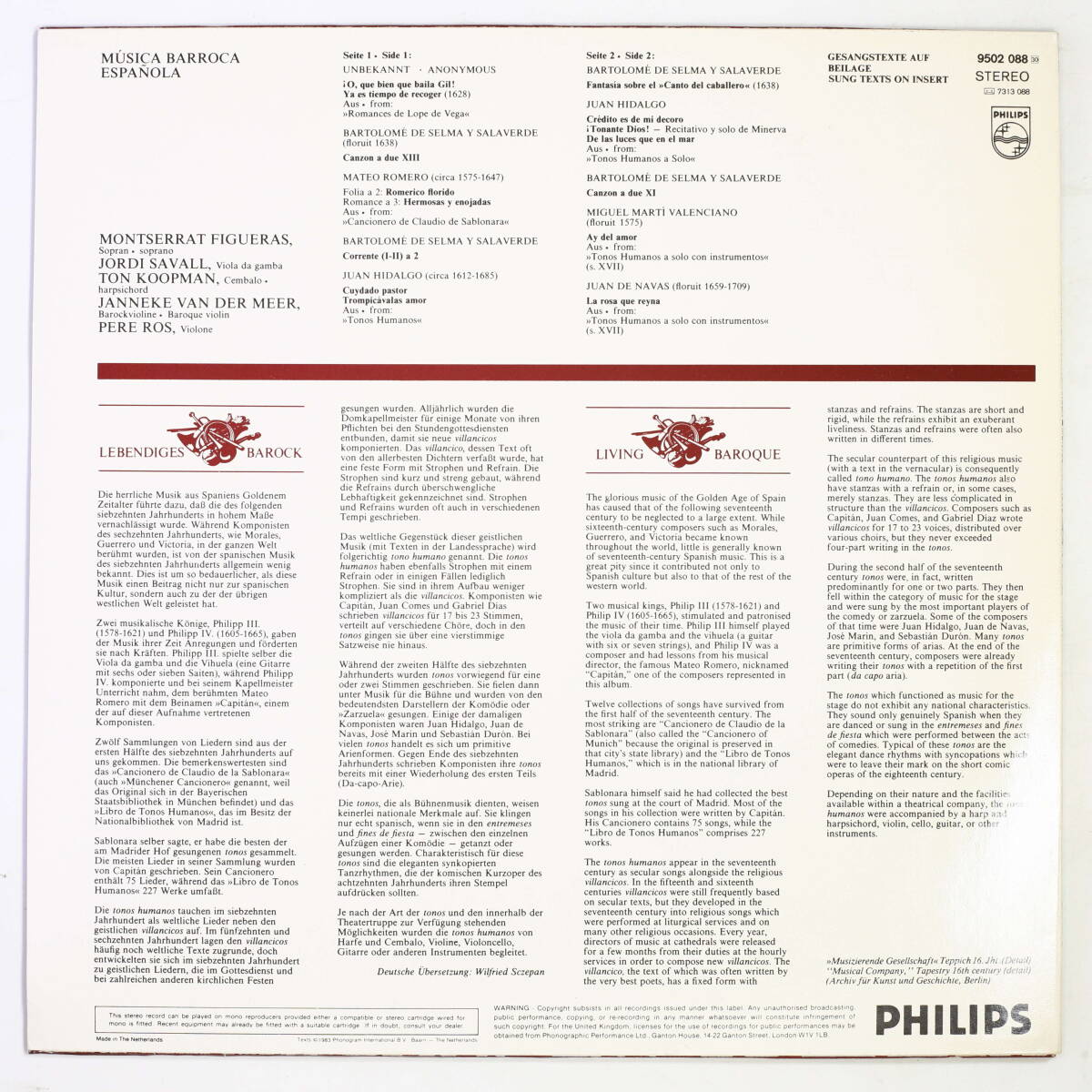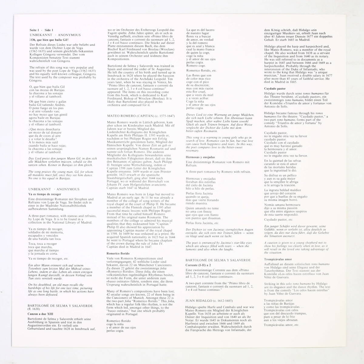 Montserrat Figueras,Ton Koopman,Jordi Savall/Bartolome de Selma y Salaverde,Mateo Romero,Juan Hidalgo (3),Miguel Mart Valenciano,Juan De Navas:Msica Barroca Espaola 並良品 オランダ盤 歌詞カード付 1976年作