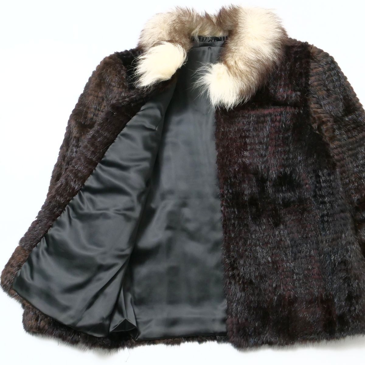 | GS4822◎ミンク 衿:フォックス ファーコート ファージャケット ハーフ丈 サイズM 毛皮コート ダークブラウン×レッドブラウン系 | |||