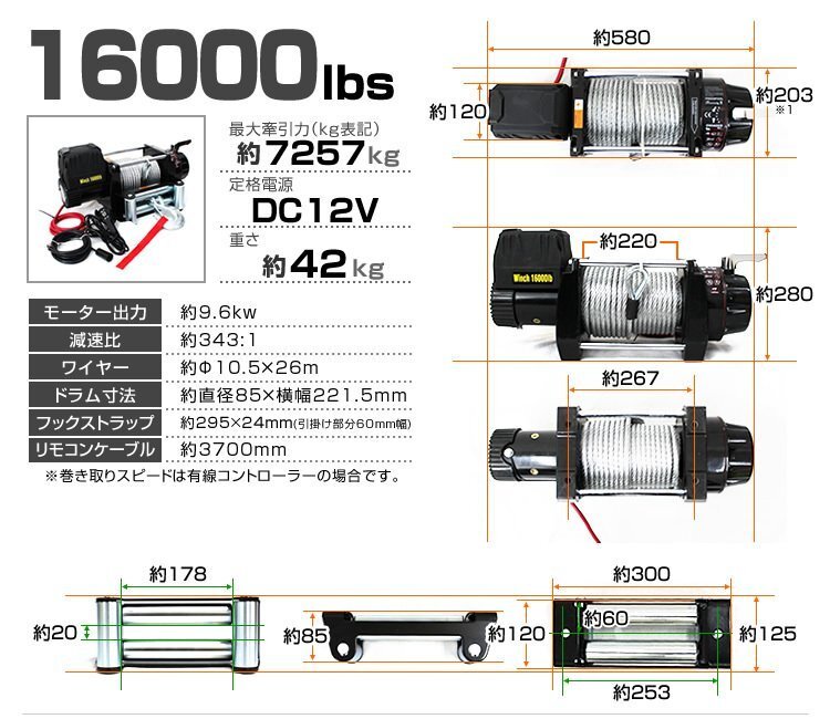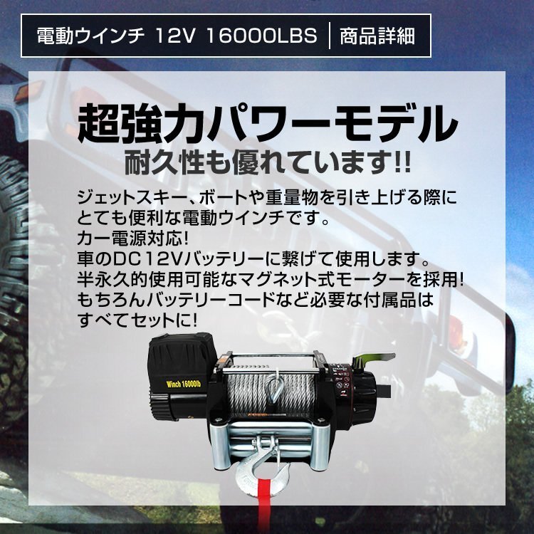 | 最大牽引力7257kg! ジェットスキー、ボートや重量物を引き上げる際にとても便利な電動ウインチです。 カー電源対応!車のDC12Vバッテリーに繋げて使用します。 半永久的使用可能なマグネット式モーターを採用。 ※本製品は水平に牽引する仕様です。上下の荷揚げはできません。 ■商品コード:ELW12V160 ■商品仕様 巻き上げ重量:16000LBS(7257kg) 定格電圧:DC12V ギア比(約):343:1 モーター:永久磁石 9.6kw ケーブル(約):直径10.5mm×長さ26m ドラムサイズ(約):64mm×220mm 重量(約):35kg その他:防水仕様 ■内容 本体 配線コード(黒) 優先リモコン ガイドローラー フック フックストラップ 無線リモコン 取り付けネジ一式 ■注意事項 ・商品は、モニターによって色合いが異なって見える場合があります。 ・仕様・デザインは改良のため予告なく変更することがあります。 ■保障期間 7日間 ※商品到着後7日以内の初期不良・破損のみご対応させていただきます。 【新品未使用品です】 |