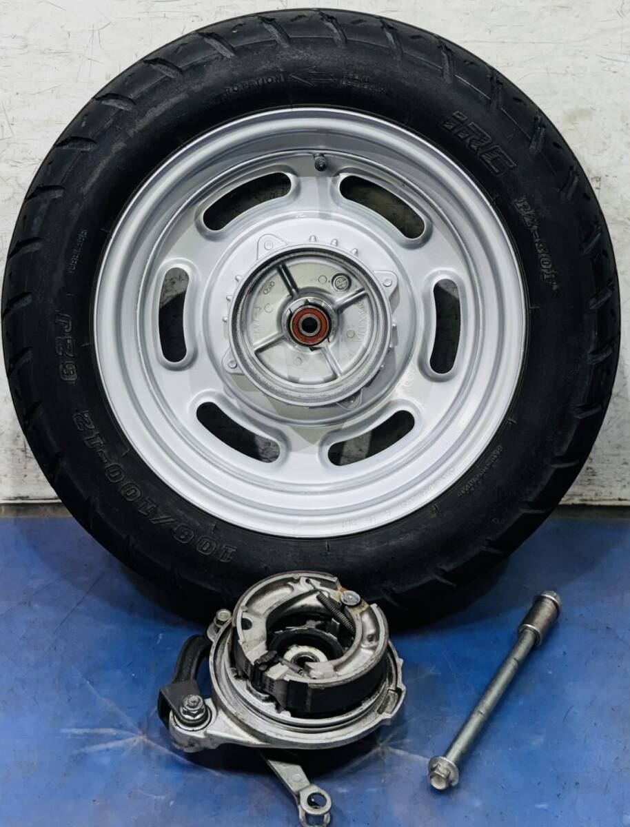中古車両、部品取り車両から外したパーツになります。 曲がりありません。 簡易オールペンしてます。 タイヤは交換してください。 ホイールとハブはエイプにも流用頂けると思います。 私なりにある程度磨いて綺麗にしての出品になります。(画像を参考に) 簡易なリペイントして有る場合が有ります。(画像を参考に) 錆傷等は画像から判断いただくしか有りませんので 良くご覧ください。 パーツとして又は部品取りにご使用下さい。 詳しい詳細は布テープの記載欄又は画像で判断下さい。 年式、型式、適合等に関しては中古現状車の部品ですので 詳細不明となり変更点などあるかもしれません。 正確には画像を参考にご判断ください。 中古品ですので傷、錆、汚等有り部分的な曲など 少なからずあるかもしれませんが商品の状態は画像参照にお願いします。 レストアベース、カスタムベース、部品取用にご検討下さい。 付属品は画像に写っている限りとなります。 画像で光って写っている場合があります、 それはアルミや鉄の腐食を少しでも防止する為に 保護剤を吹きかけている場合があります、 在庫保管時の腐食防止の為ですのでご理解下さい。 詳細のリペイン トとはある程度の錆を落としてその上から 簡易なリペイント処理をしている事を示します。 他にも掘り出し物など出品しておりますので、 お探しの方はこの機会にご検討よろしくお願いします。 ■自己紹介欄に重要事項(休日・休業等など)が御座いますので 随時ご確認下さい。■ |