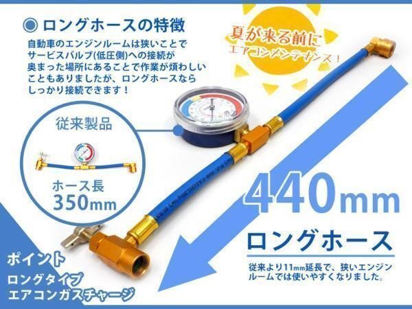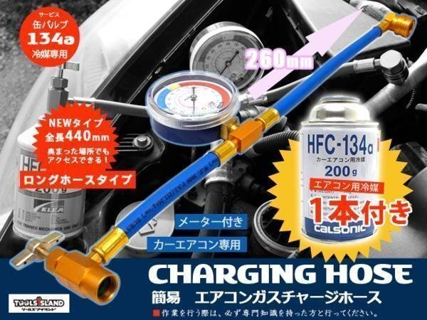 | 商品名 | R134a エアコン 簡易 ガスチャージホースセット ロングホース エアコンガス200g付き |