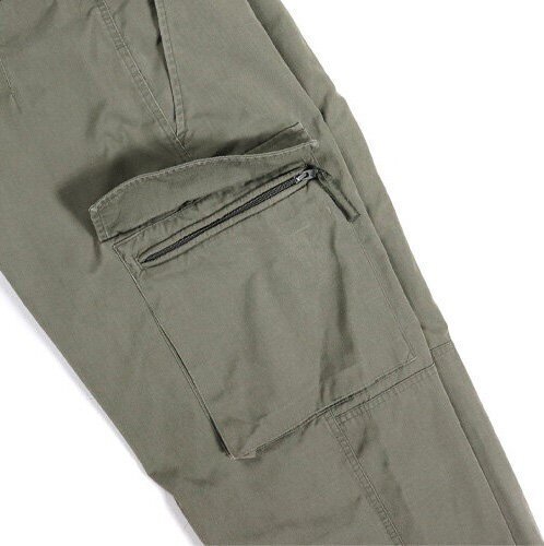 スッキリとシャープなシルエットに仕上げられているので、ミリタリーカーゴパンツが苦手な方でも比較的取り入れやすく、スタイリングのし易いパンツです。4枚目までの写真は流用です。特に補修などありません