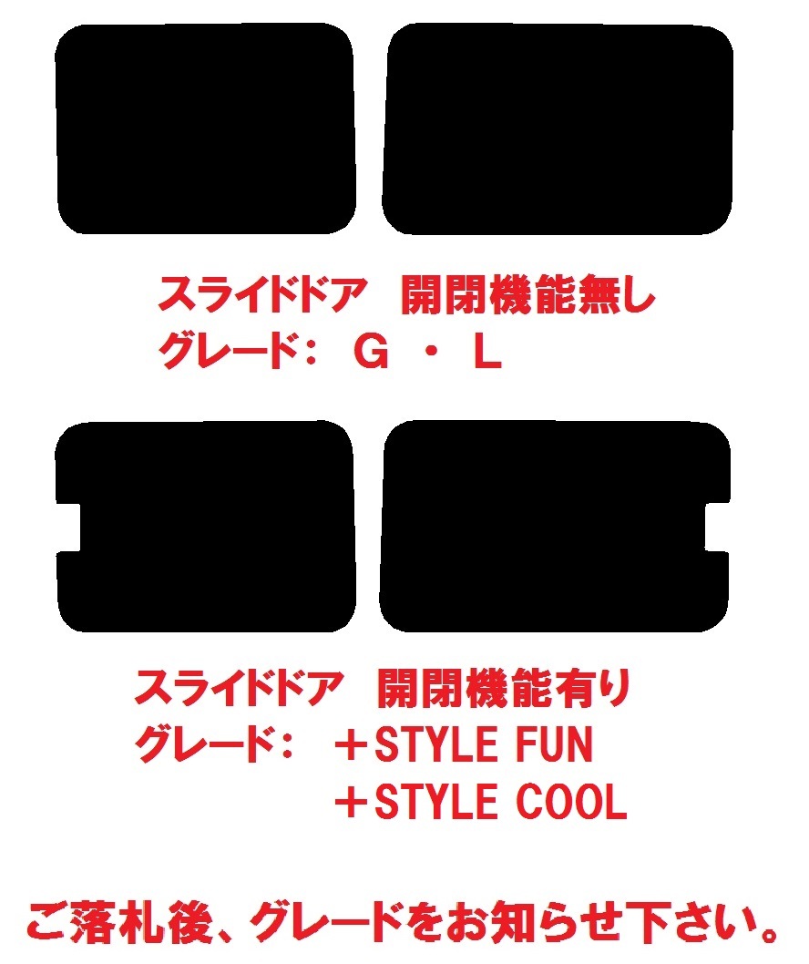 JJ1 JJ2 N-VAN用スーパーブラック『可視光線透過率1%』カット成型加工済みフィルム、リア5面セットです。(専用施工液付き) ■適合に付いて■ 平成30年7月~ JJ1 JJ2 N-VAN に適合します。 グレードによりガラスの形状が異なりますので、ご落札後確認させて頂きます。 ※適合などご不明な点は、お気軽にご質問下さい。 ◇◆◇当商品には、画像2のヘラセットが付属します◇◆◇ ■滑りの良いシリコンタイプのゴムヘラ スムーズに水切り(清掃)・貼り付け後の水抜きが出来ます。 実際の業務でも色々な物を試しましたが、シンプルなこの形状・このメーカー・このグレードの物が1番使いやすいです。 柔軟性が有りガラス(フィルム)に密着するため、フィルム折れも防げます。 ■使いやすい厚みとコシの有るプラヘラ 形状は似ていても各メーカーにより硬さ・厚みなど色々と有ります。 慣れていない方でも扱い易いように少々柔らか目の物になります。 ヘラ先にはフッ素樹脂加工のクロスを貼って有りますので、滑りが良くキズを防止します。 ■ワイプオール(不織布ワイパー) 布同様の丈夫さと紙の持つ吸水性を発揮。糸くずの発生が無く均一素材のため異物混入の心配が有りません。 施工前のガラスクリーニング~施工時にフィルムが触れる可能性の有るガラスの周りのゴム部品の拭き取り清掃~吸水等に大変便利です。 全て実際の業務に使用している物で、その中から使いやすい物を選んでいます。 ヘラセットがご不用の場合、フィルムのみの商品も有ります。こちら ◇◆◇精密コンピューターカット◇◆◇ 貼りやすさを最優先に各部のサイズ・形状など微調整し、改良を重ねた独自のデータを製作。 高精度な最新・大型カッティングプロッターによるカットで正確で滑らかなカットラインを再現しています。 施工業者だからわかる、貼りやすいサイズ・形状に仕上げています。 ◇◆◇1枚貼り成型加工済み◇◆◇ リアガラスの湾曲に合わせて熱成型加工して有りますので、平面に貼るのと同様にたるみが出ず1枚貼り出来ます。 通常の成型加工に加え、独自の加工を施し しっかりと成型加工してありますので、追加工など一切不要です。 ◇◆◇専用施工液付属◇◆◇ 軽視されがちな施工液ですが、貼りやすさに大きく関わる部分になります。中性洗剤などで代用せず、必ず付属の専用施工液をご使用下さい。 濃度については車種・季節などにより変わりますので、個別にお知らせ致します。 ◇◆◇業務用高品質フィルム使用◇◆◇ 使用しているフィルムは、安心の国内メーカー 業務用高品質フィルム「ニュープロテクション」シリーズです。(可視光線透過率1%) 業務用フィルムの中で最も濃いタイプで、紫外線99%カット 遮熱性も高めです。 厚さ48μ、コシが有り他社の1%フィルムより貼りやすいです。 同シリーズで可視光線透過率 5% 10% 15% 25% の物もご用意出来ます。 ご希望の場合は、ご落札後濃さの指定をして下さい。(部分的な色変えも可能です) ご指定の無い場合、全て1%になります。 部分的にフィルムが必要になった場合、単品販売も承ります。 他にもN-VAN用フィルム、各種出品中です。こちらもご覧ください。 ご不明な点など有りましたら、お気軽にご質問下さい。 | ||