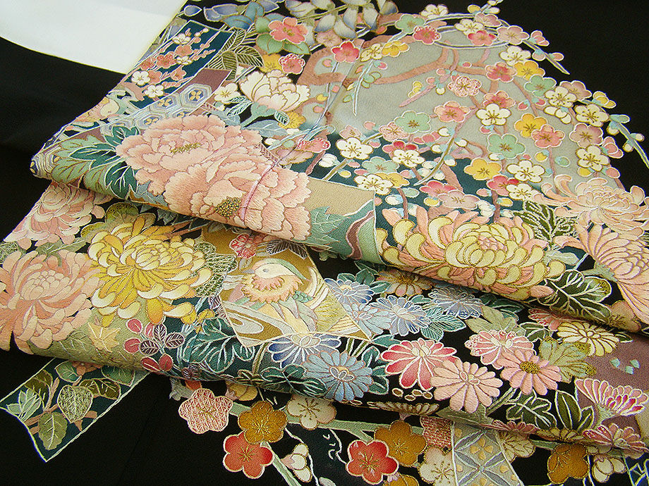 ※匠の「蘇州総刺繍」の黒留袖です。 新郎新婦のお母様や、お仲人さんにぴったりでしょう。 日本情緒の趣が匂いたち繊細に染成した脈々と受け継がれた色彩感覚が、 見る人を魅了する品物です。 40代~70代迄幅広く着用出来ます。身長152cm~158cmの貴女に最適。 |