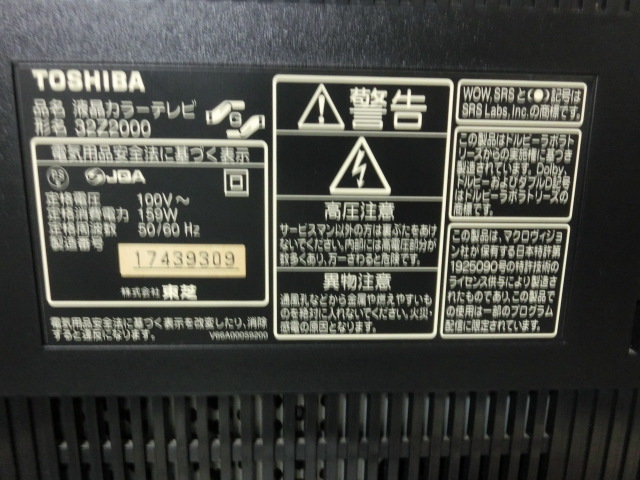 TOSHIBA REGZA 32型液晶カラーテレビ 型名32Z2000 リモコン付き B-CASカード付 実働使用品 スペース有効活用に| 出价者 | 信用 | 价格 | 时间 |