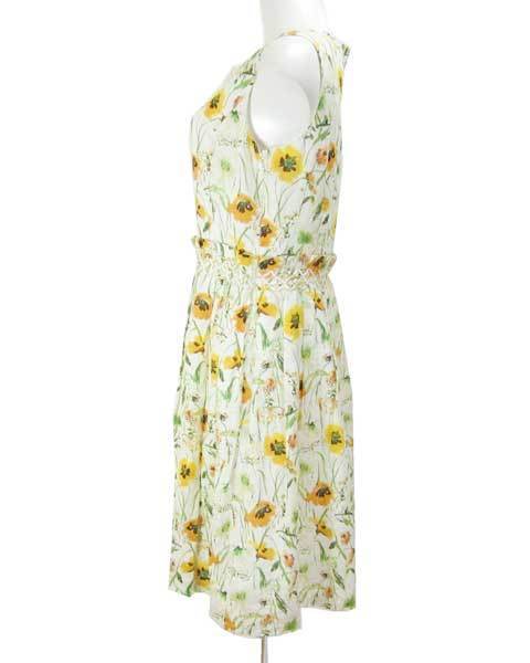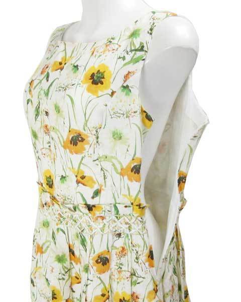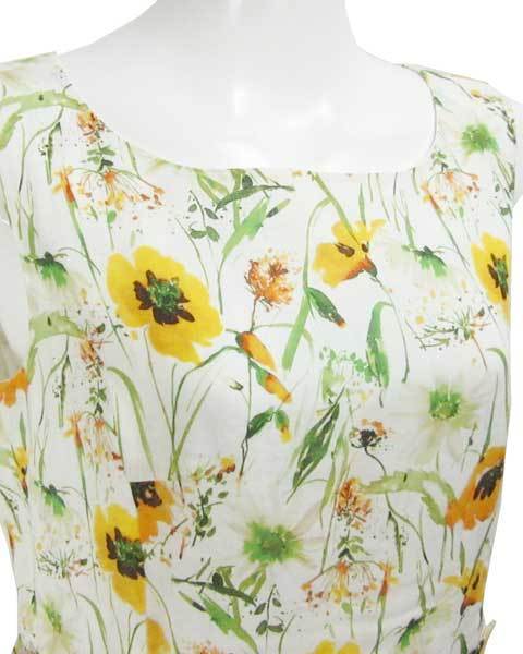 | ハロッズ Harrods 白 黄 花柄 ノースリ ワンピース 3 |
