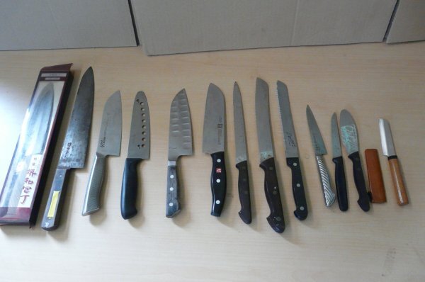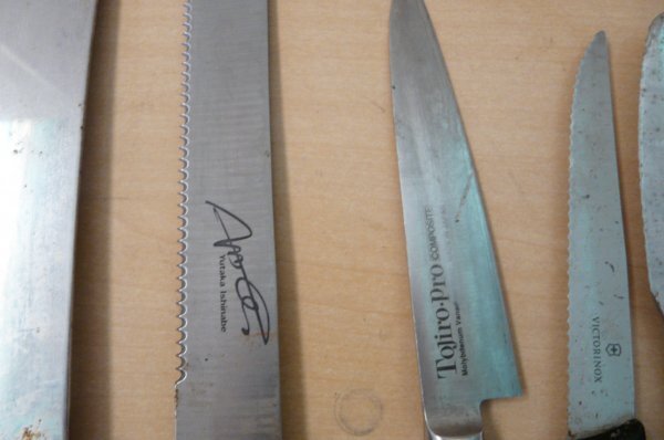| 包丁まとめ 約12本 堺武守 正広別作 ZWILLING TOJIRO PRO yutaka ishinabe VICTORINOX 他 和洋包丁 ブレッドナイフ 出刃 柳刃 現状品 K14SA |