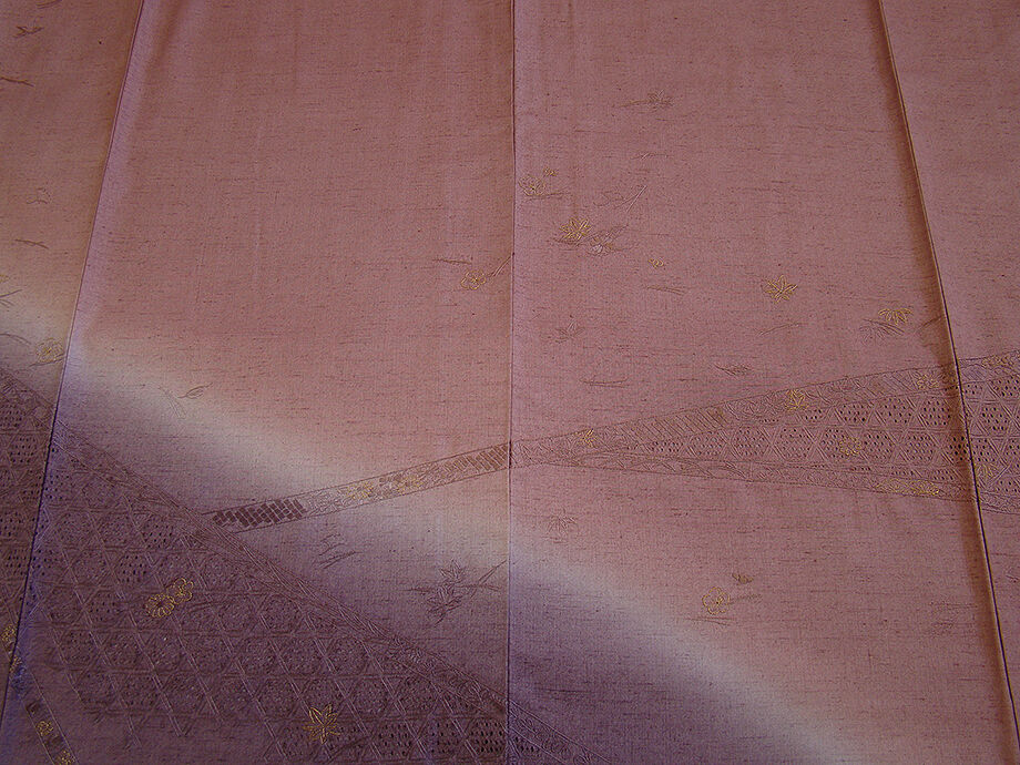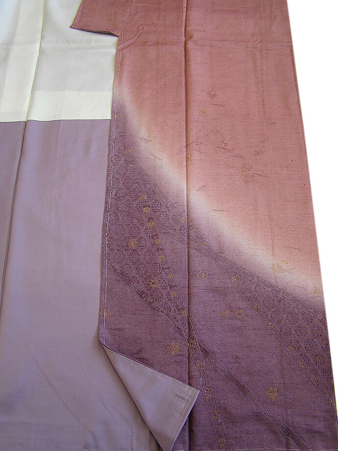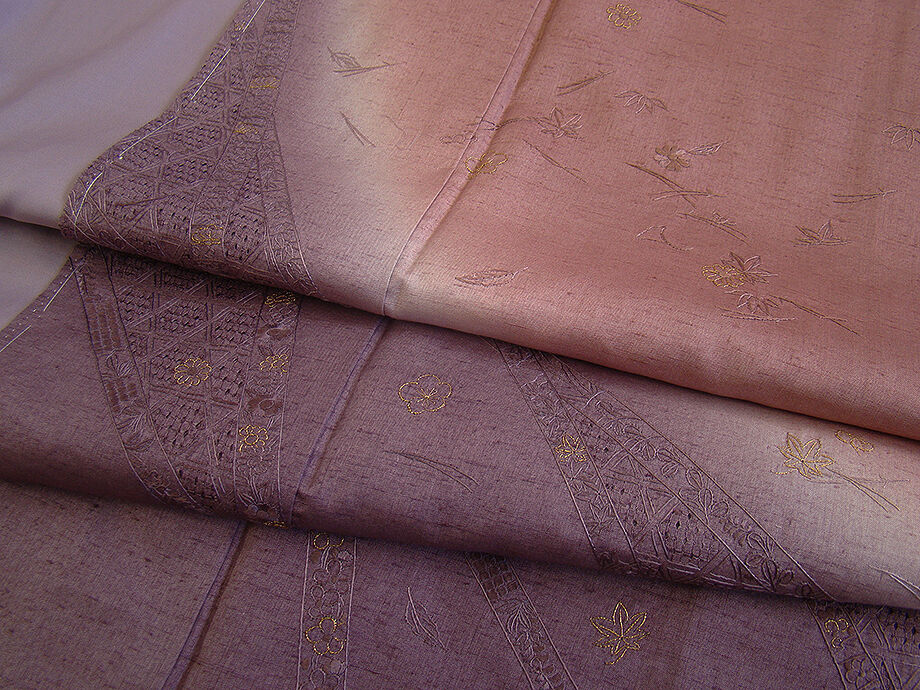 | 商品説明 | こちらのお品は「袷」でございますので、10月~5月までお召頂ければと思います。 大変にしなやかな柔らかな手触りの裾さばきが良く、着心地も良い真綿紬地となっており、 ふっくらとしており現代のお洒落着として大変人気がございます。 風合いが心地よく節やぼそも味わい深い真綿紬地の訪問着、 蘇芳香色地に裾にかけて渋い古代紫色ぼかしに極め細やかな精緻な手技を駆使した 金糸入りの汕頭刺繍入りの松葉や花柄の豪華な総刺繍柄、 八掛は藤色(正絹)、幅広い年代の方にお召頂けます。 |