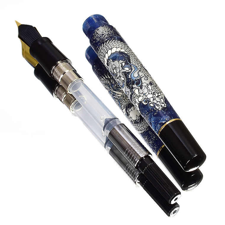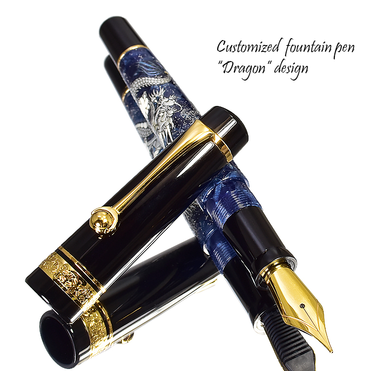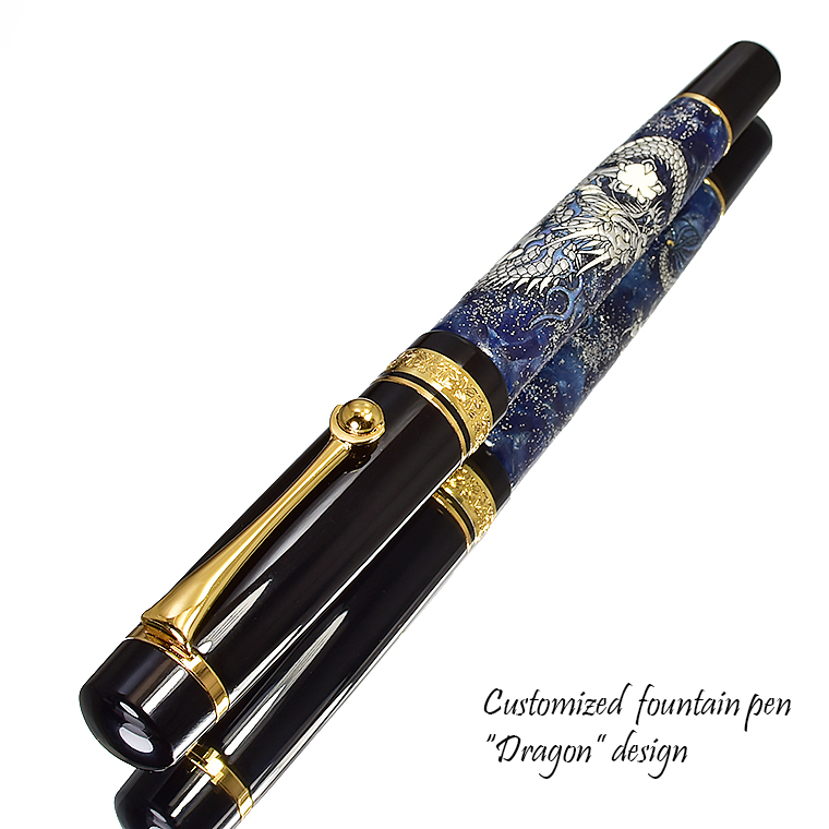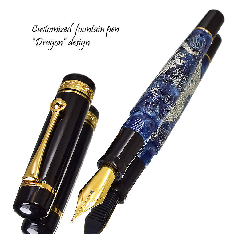 四季彩 ネイビー×ゴールド ミディアム万年筆 こちらに蒔絵調漆塗り 煌びやかなラメ装飾 ハンドメイド作品 銀龍 ドラゴンデザイン ペン先 F (細字)コンバーター付属 こちらはペン先に対して胴軸の絵柄が横側にくる 奥ゆかしいデザインタイプとなります(写真参照) ![]() 今回ご紹介するのは、四季彩ネイビー万年筆に漆塗りを施し豪華なラメ装飾と ドラゴンのデザインをのせた ”ハンドメイドカスタマイズ商品”です。 迫力ある銀龍が舞う見事な1本に仕上がっております。 ドラゴンは東洋では縁起の良い生き物として、西洋では力強く神秘的な生き物として、 古くから人々の想像力を刺激してきました。 ドラゴン絵柄万年筆は、デザインや品質だけでなく、ドラゴンの象徴性も楽しめる 万年筆です。ぜひ一度お試しください。 ![]() キャップと胴軸の落ち着いた紺軸に漆を塗り、 その上に惜しげもなくラメをふんだんに散りばめ、ドラゴンデザインを施した1本、 さらに透明の漆を重ねて塗ることで光沢が出て、豪華絢爛な仕上がりです。 是非一度手にとって、この美しさを堪能してください。 ![]() 独特な質感は見た目だけではなく、少し浮き上がった感覚の手触りが筆記する際も非常に 心地よいです。し浮き上がった感覚の手触りが 筆記する際も非常に心地よいです。 ![]() 四季彩万年筆の「ネイビー軸 ミディアムサイズ」をベースにしてます。 美しいレジンボディは、海外ブランドのモデルにも引けをとらないと思います。 今回ご紹介するのはミディアムサイズで、キャップを尻軸に挿さなくても、 適度な重量感で快適な筆記を行えます。 ![]() *こちらはペン先のイメージ写真です 肝心のペン先ですが、書き味に定評のあるドイツ製JOWO社、スチールニブを採用。 ミディアムは6号となります。 今回出品の字幅はF(細字)です。 使用用途や好みに合わせてお選び下さい。 コンバーター、カートリッジのどちらも付属しておりますので、ご購入いただいてから、 すぐにご利用いただけます。 *カートリッジはヨーロッパ規格の口径:2.4mmが適合いたします* ![]() 特別仕様のカスタマイズ商品ですので、何か不具合が生じた場合は、 当店にて責任を持ちまして対応させていただきますので、ご安心ください。 こちらの万年筆に興味を持っていただける皆さまの入札を心よりお待ちしております。 どうぞよろしくお願いいたします。 ![]() ************************************************************* ≪商品詳細≫ 限定 カスタマイズ万年筆 四季彩ネイビー軸ベース 蒔絵調装飾 漆塗り ラメ装飾 銀龍 ドラゴンデザイン ペン先 : ステンレス ドイツ製JOWO社 サイズ : 6号(国産15号)大型 字幅 : F(細字) 長さ : 145mm(キャップ装着)/135mm(キャップ外した時) 径 : 15mm/キャップ、13mm/ボディ 重さ : 22g キャップ :ねじ込み式(尾栓装着/ねじ込み式) 機構 : カートリッジ(欧州規格)/コンバーター両用式 *カートリッジはヨーロッパ規格の口径:2.4mmが適合いたします* 材質 : ボディ/レジン・工芸漆 キャップ/アクリル樹脂 クリップ・トリム/ステンレススチール製ゴールド仕上げ 付属品 : 簡易紙ケース・コンバーター内蔵・カートリッジ1本 新品未使用 こちらはペン先に対して胴軸の絵柄が横側にくる 奥ゆかしいデザインタイプとなります(写真参照) *お使いのモニター、撮影条件などの理由で実際の商品と若干色合いが 異なる場合がございます。 ※新品未使用ですが、加工時に軸以外の金属部分にも漆がついてしまった 箇所がある場合がございます。 また下地の透明色部分にも漆の僅かなはみ出しや 手で触ると僅かに漆の盛り上がり箇所がある場合がございます。 ハンドメイド作品として予めご了承の上、ご入札をお願いいたします。 ************************************************************* |