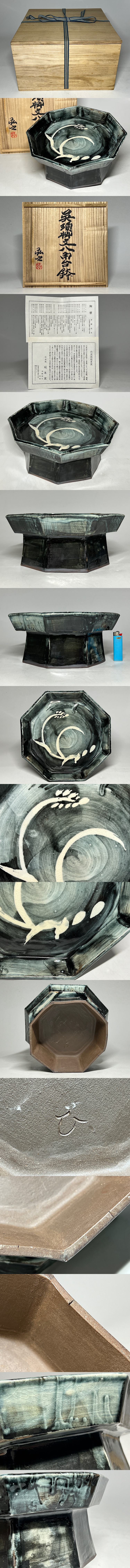 市野弘之作 丹波焼延年窯 呉須竹紋 八角台鉢 共箱 径:27.4cm ◆商品詳細 寸法(約):12.2x27.4x25.6(高×幅×口径cm) ※寸法に若干の誤差が生じる場合もございます。 少し汚れ、窯傷がありますので、 ご承知の上入札お願いします。 状態等画像にてご確認の上ご入札よろしくお願いいたします。 ◆発送先等のご連絡とお支払いについて ※発送先等のご連絡 落札時から48時間以内にお願い致します。 ※お支払 かんたん決済の期限内にお願い致します。 複数点落札時にまとめて取引の場合(72時間内)に、 まとめて取引の取引手順(落札者方の操作)を参考にお願い致します。 梱包したサイズを測って、地方によって送料を決めますので、よろしくお願いします。 ◆掲載画像について ※画像は現物を撮影しておりますが、照度、遮光、モニターによっては実物と 色目が異なって見えることがありますのでご注意ください。掲載画像では確認 できない傷や汚れがある可能性もございます、あくまで 中古品であるということをご承知の上、御入札をお願い致します。 ◆補償について 商品到着後はすぐに状態の確認をお願い致します。 商品の破損等がございまし たら、箱や梱包材など全てそのままの状態で保存し、お早めにご連絡ください。 (到着日から一週間以上経過、梱包材の廃棄済み等の場合、保証は致しかねます のでご注意ください。) ◆返品について 思っていたイメージと違う、などのお客様主観による返品はお受けできません ので、予めご了承ください。ノークレーム、ノーリターンでお願いします。届 いた商品が商品説明と著しく異なる場合(寸法、キズ記載ミスなど)のみ承り ます。早めにご連絡ください。 ◆注意事項 当方の希望価格と隔たりがある場合は、終了前にやむなく取下げさせて頂く場 合がございます。 ※商品ご落札翌日から4日間以内にご連絡が取れない場合は、入札取消の処置を 取らさせていただく場合がございます。 ※評価の悪い方は取り消す場合がございます。 ※原則として当方の不備以外のキャンセル・返品・返金は受け付けておりません。 以上の点を予めご了承頂いた上で、入札・落札お願い致します。 ◆発送方法 ▼ゆうパック(補償あり/追跡あり) 梱包後のサイズ:~約100cm ※送料全国一律1500円 (但し北海道、沖縄、離島は+500円いただきます。) 発送元は静岡県となります。 ( 商品の組み合わせによっては同梱をお断りさせていただく場合があります。) ※大型商品について 郵便局の規定を超える商品の場合は、佐川急便またはヤマトでの発送となります。 |