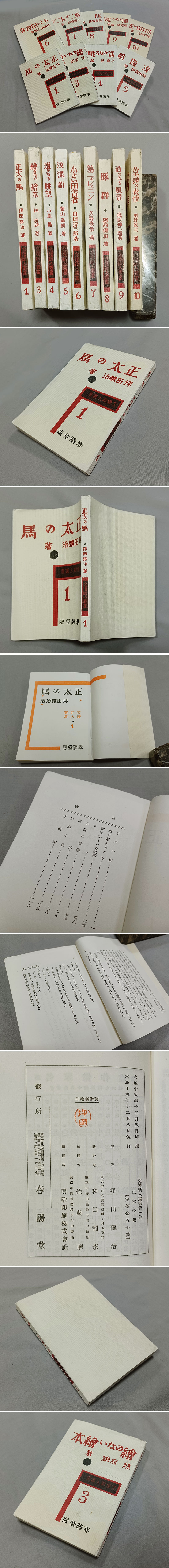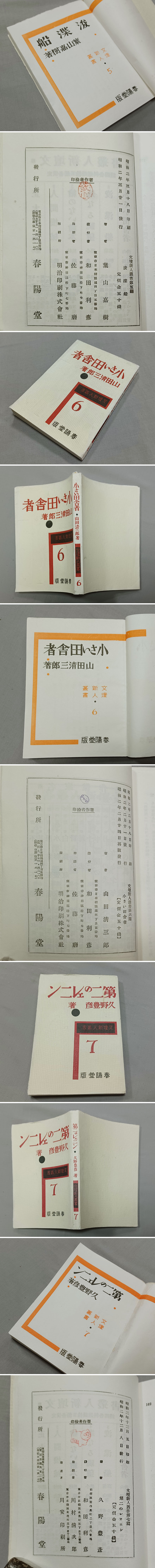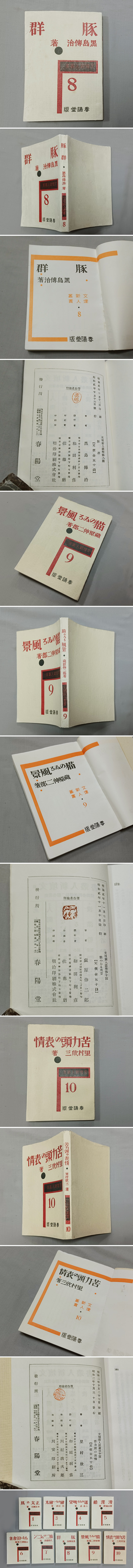 | ★超希少叢書、プロレタリア★『文壇新人叢書』9冊、大正15年~、7冊初版、春陽堂、保存良好、『正太の馬』坪田譲治(第1短編集)、『猫のゐる風景』蔵原伸二郎(第1小説集)ほか★生田敦夫(洗竹亭)旧蔵・保存用拵え帙付き | ||||||||||||||||||