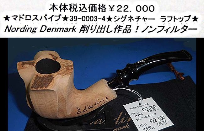 現物を写真撮影、お手元にこの写真の品が届きます。デンマークのパイプ作家 Nording が製作したナチュラルラフトップパイプです。原木より削り出したままのパイプで、自分で絵柄などを彫り込んで自前だけのパイプとしても楽しめる。長さ141mmx高さ57mmx幅52mmx火皿径20mmx深さ50mmx重さ75g。ビンゴが出品している全ての商品は、店頭販売、オークション販売、ショッピング販売等重複し販売しております。時間差で売れ切れや、出荷点検検等で傷が付いていたり破損している事もあります。お買い上げ頂きましても出荷出来ない場合も有ります。ご注文商品は他商品と同梱配送出来ますので、何個ご注文されても送料は1口分です。1.レターパック発送 ¥600 日時指定不可。(郵便レターパック)。2.宅配便発送税込み ¥880日時指定必須(沖縄/離島は別途価格)。| 出价者 | 信用 | 价格 | 时间 |