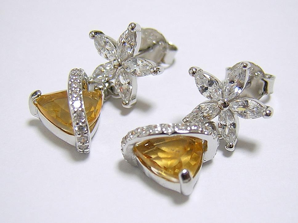 ブラジル産の天然シトリンとキュービックジルコニアを使用したピアスです。 シトリンの大きさは約7×7mmです。 【中石】天然シトリン 【産地】ブラジル産 【カット】トリリアントカット 【脇石】キュービックジルコニア 【重さ】2.7g 【サイズ】縦18mm×横9mm ポスト長さ10mm 【素材】シルバー925 (14金ホワイトゴールド仕上げ) 【刻印】S925 【状態】新品 |