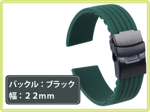 時計バンド 交換ベルト シリコーンゴム 腕時計 ストラップ 22mm ブラック金具×グリーン