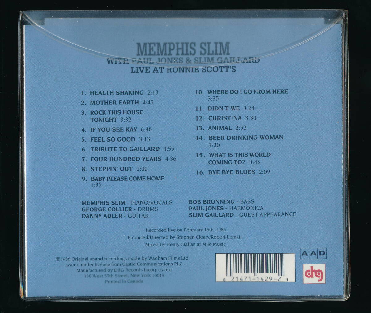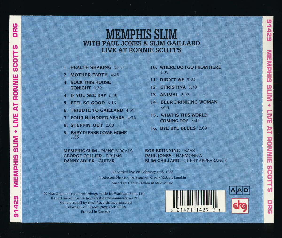 MEMPHIS SLIM with PAUL JONES & SLIM GAILLARDのCD「LIVE AT RONNIE SCOTT'S LONDON」の輸入盤・中古品です。