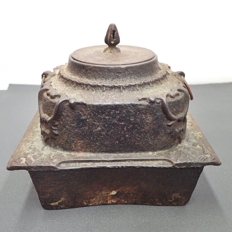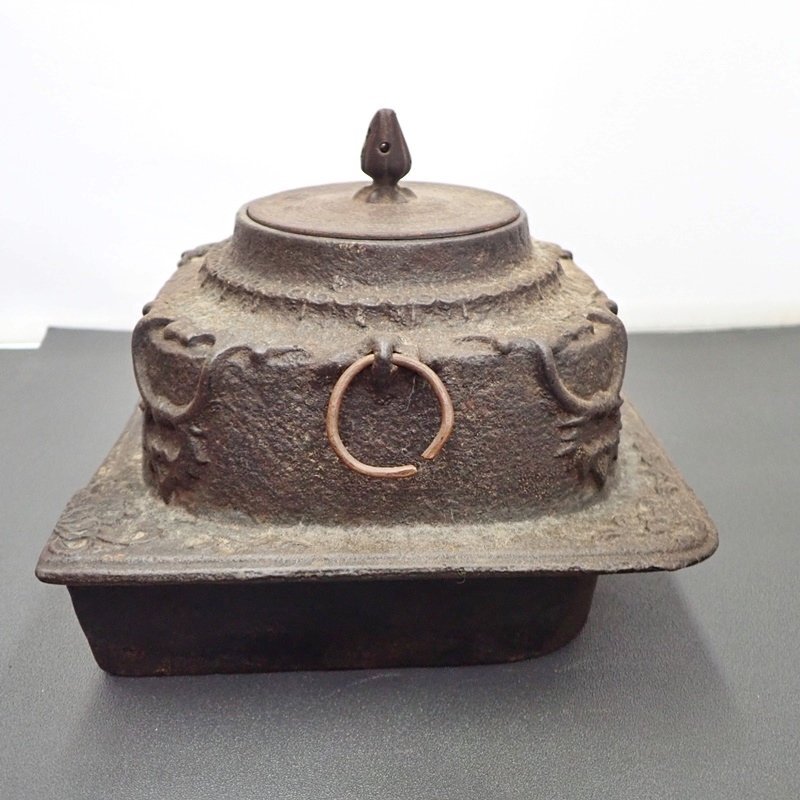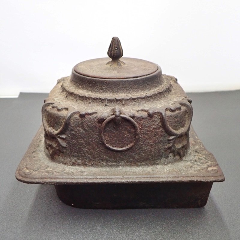 | 商品名 | 茶道具 茶釜 鉄釜 鉄器 四角 ヴィンテージ 横幅17.5cm 高さ17cm |
