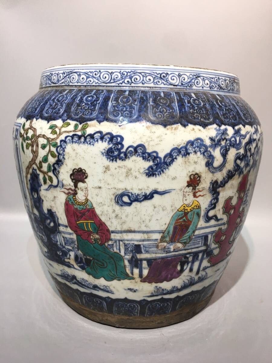 中国磁器 陶芸 磁器『青花加彩ストーリー缶です』施釉陶 古代工芸品 陶芸 精美彫 置物 收藏品 | |||