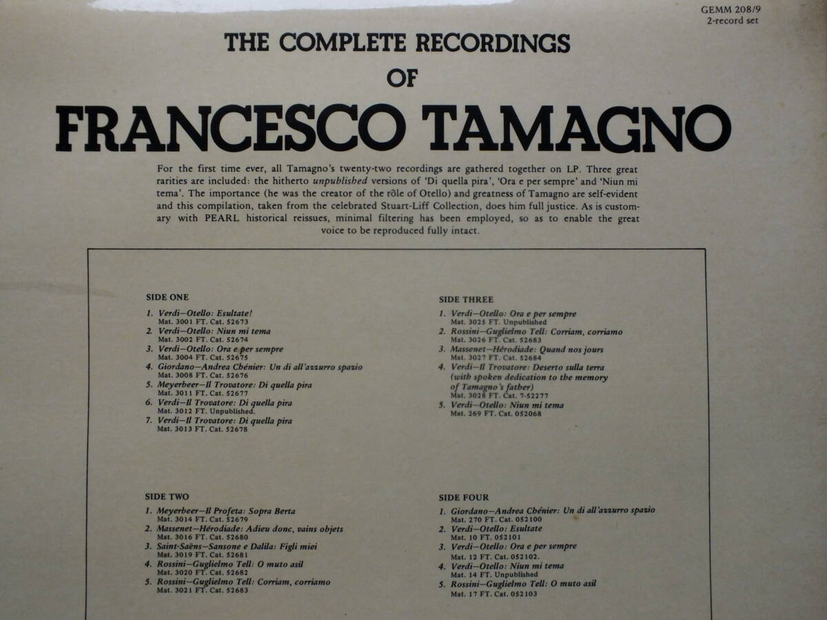 | GEMM 208-9 フランチェスコ・タマーニョ FRANCESCO TAMAGNO OTELLO / GUGLIELMO TELL LP【8商品以上同梱で送料無料】2508 | |||||