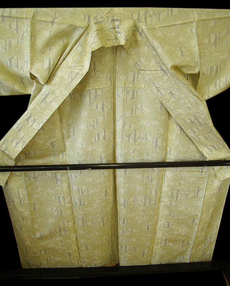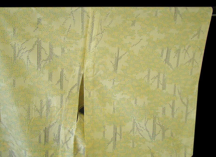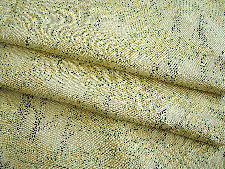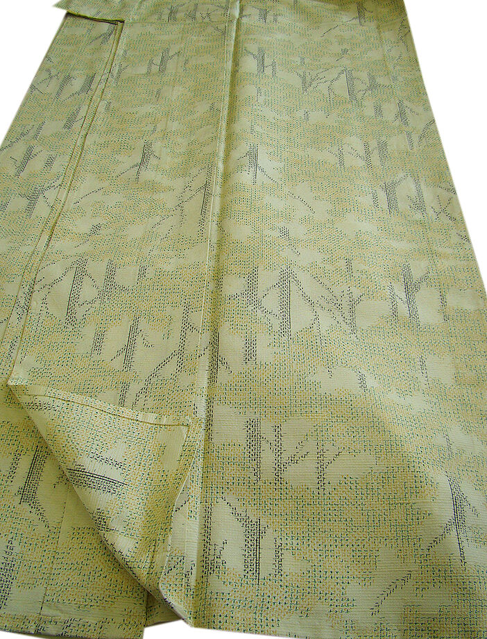 | 商品説明 | こちらのお品は「単衣」ですので5月、6月、9月にお召頂ければと思います。 着物には、大きく分けて「袷(あわせ)の着物」と「単衣(ひとえ)の着物」と「夏着物」があります。 反物(表地)を着物に仕立てるときに、裏地類をつけるものを袷の着物、 つけないものを単衣の着物と呼び、胴裏や八掛といった裏地がつかない一枚ものの着物です。 また裏地がないため、座る時などにヒップのラインが目立たないよう、 居敷当て(いしきあて)の生地をつけることもあります。 居敷当ては付いておりません。 しなやかでさらりとして手触り良く着心地良い涼やかな風合いの十日町紬地、 薄いクリーム色地に山吹、緑、黒色等の織柄が洒落感高い着物姿を演出しております。 |