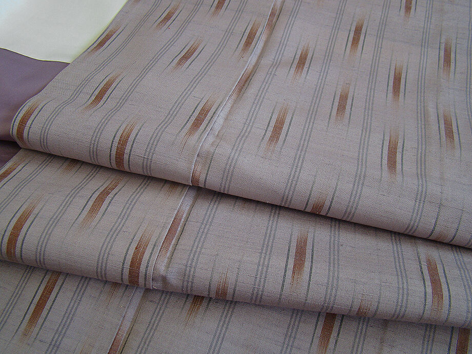 | 商品説明 | こちらのお品は「袷」ですので10月から5月までお召頂ければと思います。 しなやかな紬は、着易く動きも軽く、着くずれしない腰の強さを併せ持った お洒落着としていつでもどこへでもお気軽にお愉しみ頂けご愛用頂けるお品です。 しなやかな手触りのシャリやハリ感ある肌触りも心地よい柔らかな紬地、 薄い鳩羽鼠色地に茶、グレー色の織柄、 八掛は鳩羽色(正絹)、幅広い年代の方にお召し頂けます。 |