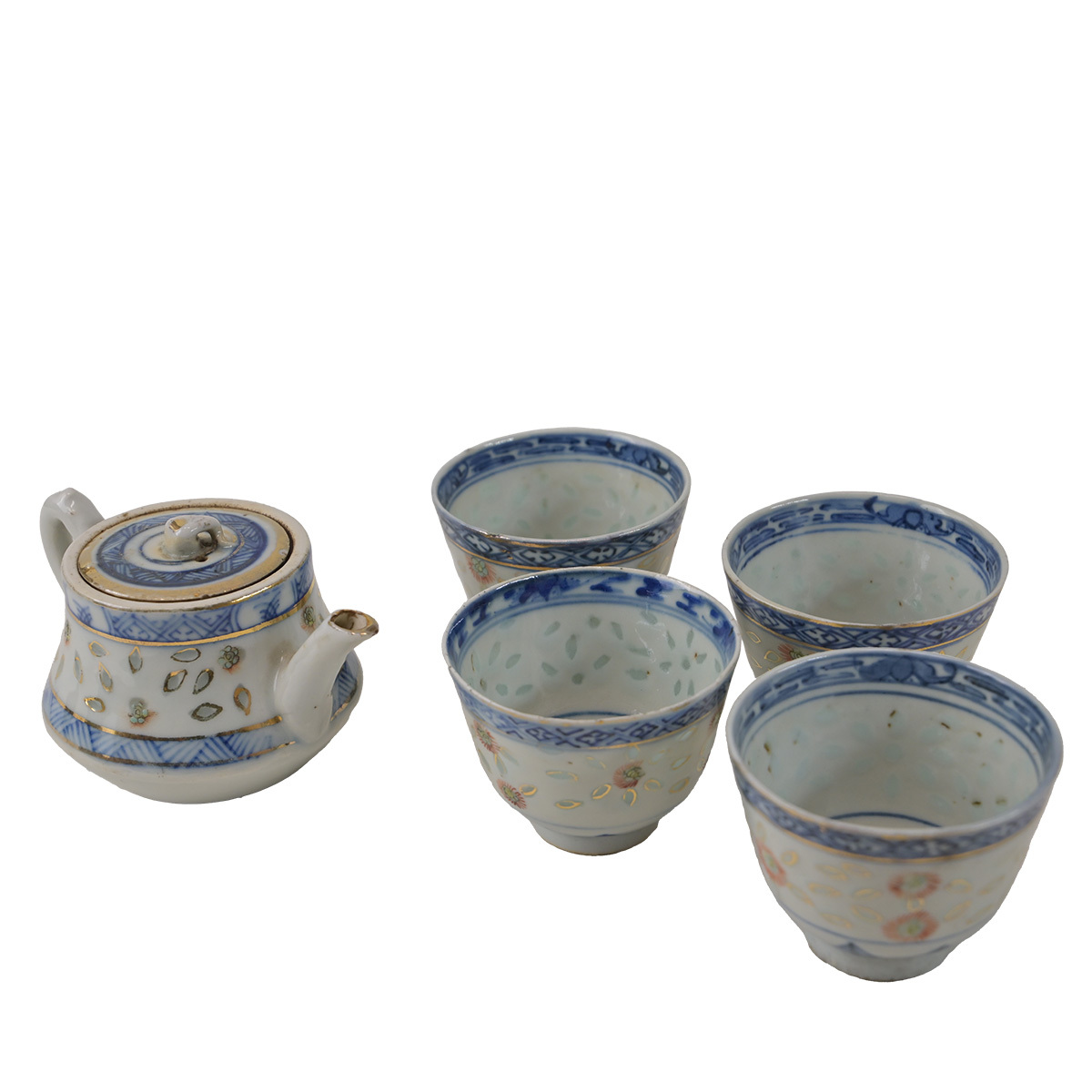 ご覧いただきありがとうございます。陶磁器のコレクションを同時に出品中です。 併せてご検討ください。よろしくお願いいたします。 寸法 全長 茶壺 約 9×12.5×7.7cm 茶碗 約 7.5×5.4cm 1客極小のホツがございます。 蓋にもホツがございます。 汚れ、スレ傷などがございます。 その他、詳しくは画像にてご確認ください。 | ||