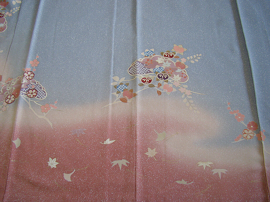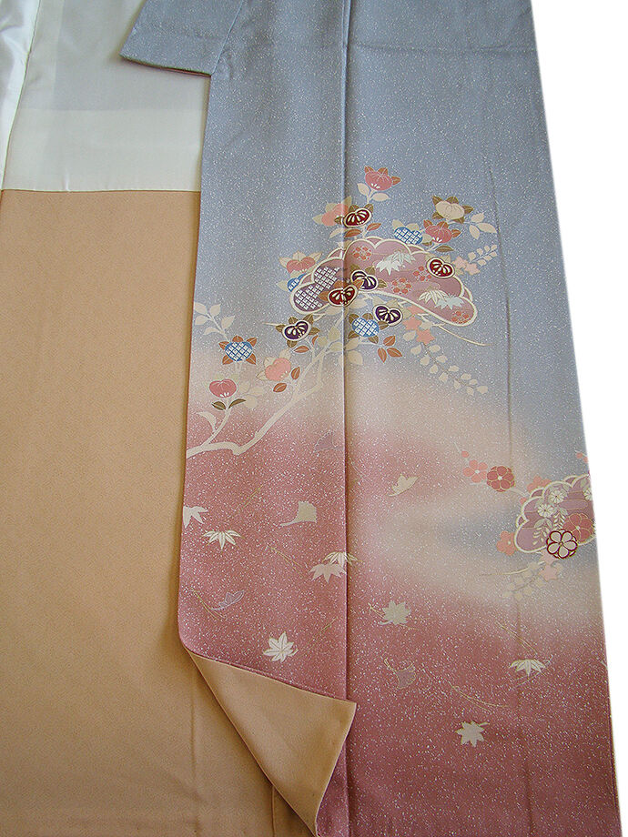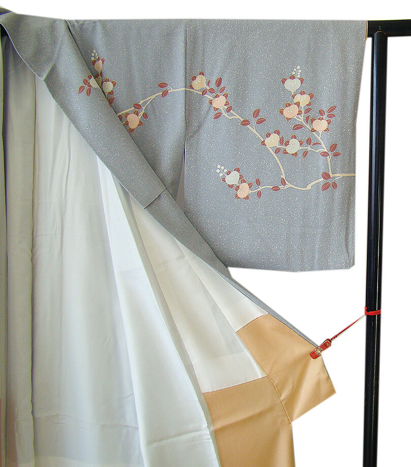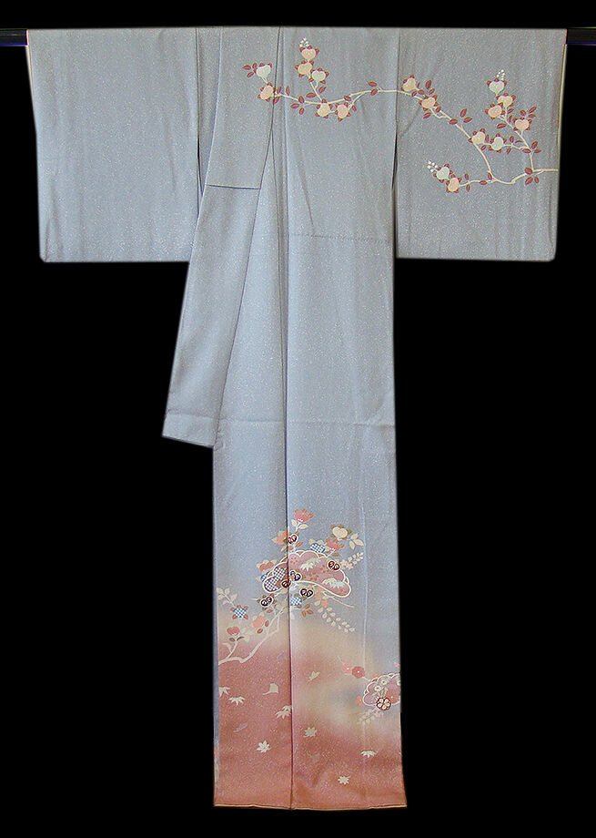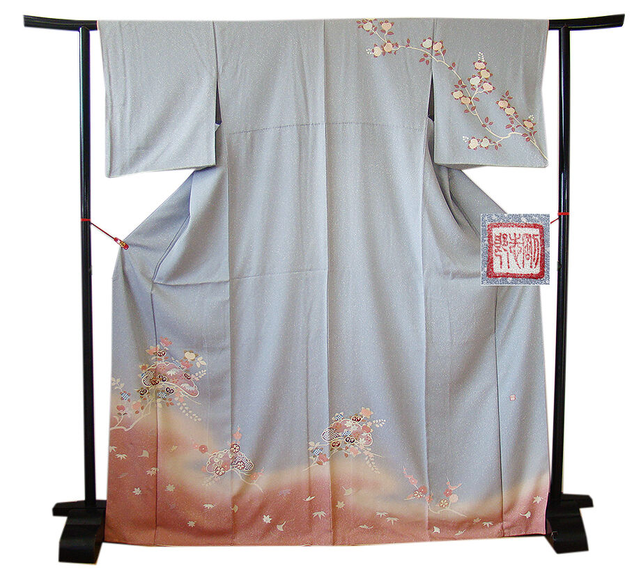 | 商品説明 | こちらのお品は「袷」ですので10月から5月までお召頂ければと思います。 しなやかで柔らかな手触りの着心地良い重めの極上ちりめん地の生地、 灰青色地に裾にかけて紅梅色ぼかしにたたき染に松葉や花木柄等の染柄に金彩加工仕立て、 八掛は水柿色に柄入り(正絹)、作家の落款入り、幅広い年代の方にお召頂けます。 |