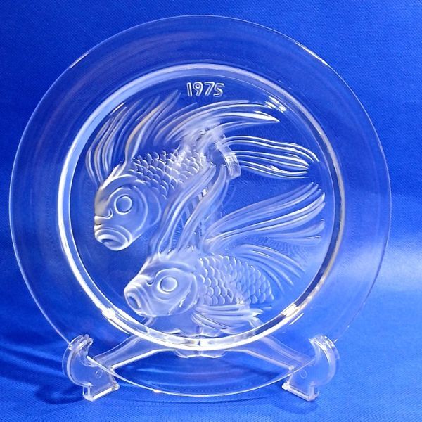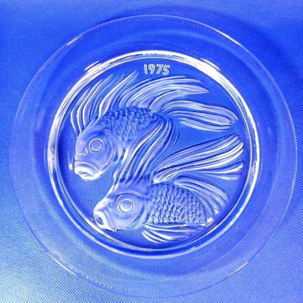 ★感謝セール! 通常価格2万円?! ルネ ラリック 1975年製 金魚 イヤープレート クリスタルガラス 飾り皿 フランス アンティーク LALIQUE
