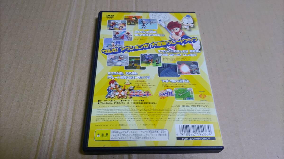 ケースには汚れがあります。擦り傷が多めです。起動確認しました。ゲームの方は、初代やサルゲッチュ3の方が面白かったですが、ドッジサッカーフットサルが鬼のように面白いです。個人的には、FF7のスノボ並みにやったミニゲームです。オフサイドなどもなく、相手に技とボールをぶつけまくって、全員ノックダウン状態にしてから悠々とゴールを決めるといったハチャメチャなゲームです。ここにガチャメカ要素を取り入れれば、1このゲームとして確立できるかもしれません。似たようなゲームがないかと、GCのマリオストライカーズをやってみましたが、全く違いましたね(笑)