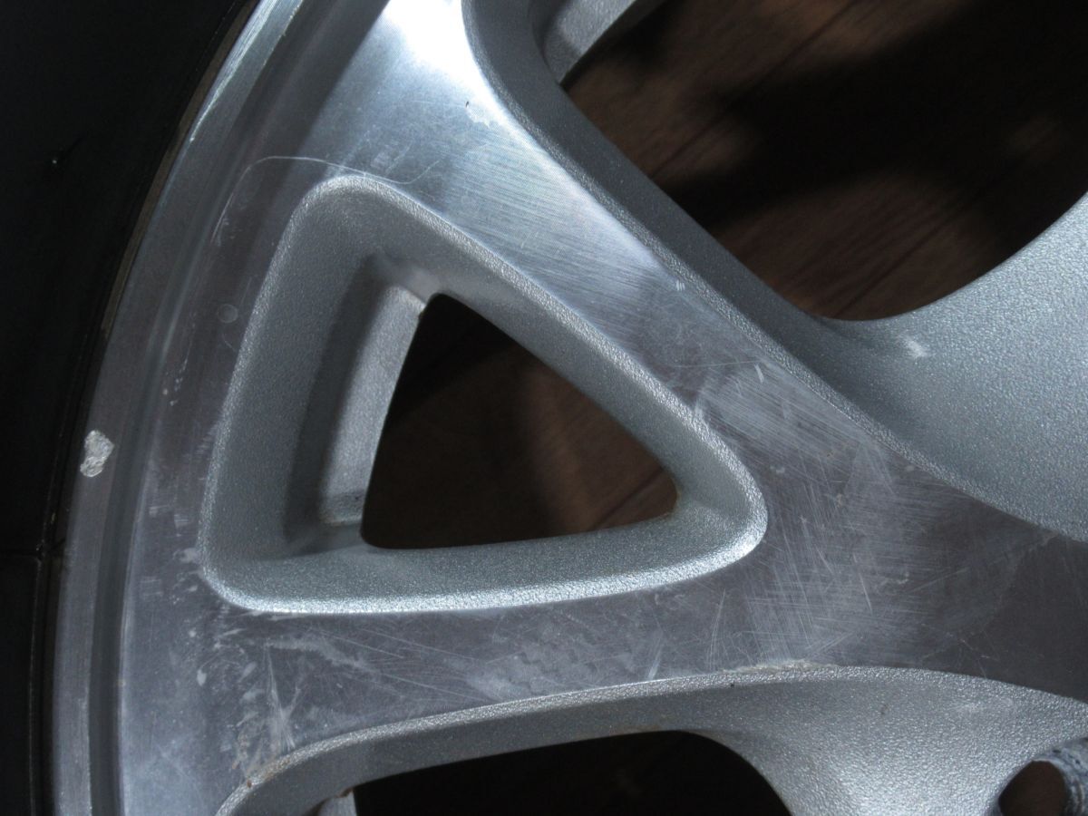 状態 中古品となります。(前装着車情報・使用期間・距離等は不明となります)。 1本表リムに合計3cm位ガリ傷が有ります。 1本表リムに合計1cm位ガリ傷が有ります。 1本表面所々に擦り傷?磨き傷?が有ります。 1本表リムに合計10cm位ガリ傷が有ります。 4本とも裏面に腐食や汚れが有ります。 その他、4本とも、リムやスポーク部に小傷や使用傷、部分的にダスト汚れや洗車シミなどが有りますが、見た目の歪みは有りませんでした(機材がないためバランス・フレは未確認となります)。 1枚目画像に写っておりますものでお渡しいたします全てとなりますので、画像をよくご確認くださいませ。 純正ナットは付属致しませんのでご了承下さい。 その他付属品等はございません。 |