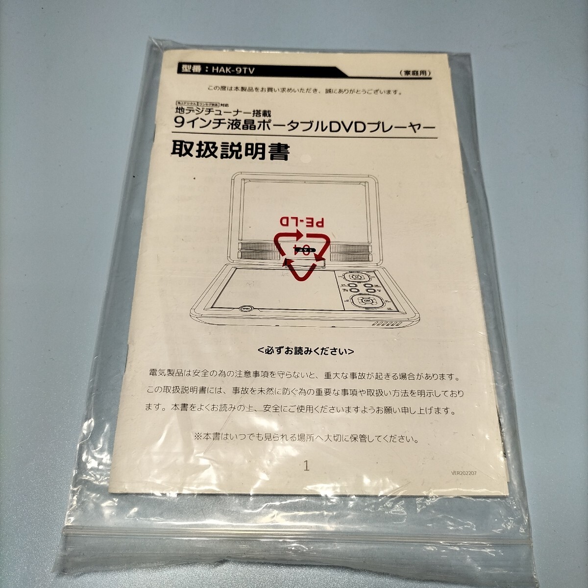 9インチ液晶ポータブル DVDプレーヤー ポータブルDVDプレーヤー ワンセグ 地デジ HAK-9TV