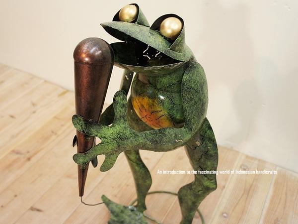 | 愛嬌のあるカエルの音楽隊ボーカル担当です。 意外と大きくかなりの存在感を放ちますよ。 お部屋や玄関先のアクセントとしていかがでしょうか。 愛らしい表情に癒されます。 ■サイズ:幅40cm×奥行43×高さ70cm ※多少の計測誤差はご容赦ください。 ■材質:ブリキ | ||