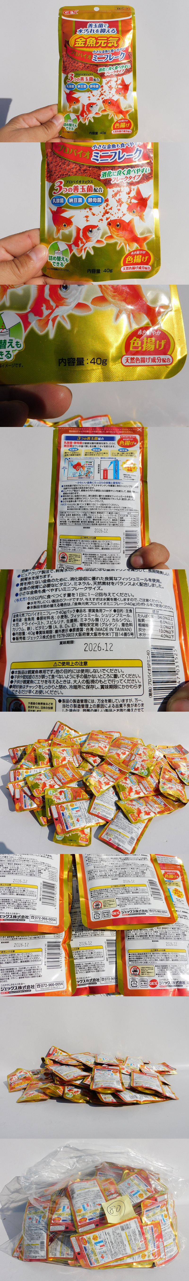 | 【メーカー/商品名】 GEX 金魚のエサ 40g 金魚元気 プロバイオフレーク 期限2026年12月 80個セット ※全部同じ物です。 【商品の状態】 新品同様 お店の在庫品 こちらお店の閉店の際の在庫品です。 期限も2026年ほとんどが12月です。少し10月が混ざるぐらいです。 時間の関係で1個ずつ売る時間が無いのである程度まとめて出します。 量が多いので使う以外にもフリマなどで細かく売りさばくのも良いかもしれません。 他にも色々な種類を仕入れておりますのでそちらもご覧ください。 保管品なのでまだ汚れが残っているときもあります。 【注意事項】 ~未使用品の場合~ ・未使用品は年式は古くても機能的には新品同様(動作保証)です。 ・物によっては10年以上前の物もある時があります。年式が気になる場合は落札前にネットで同型を調べるなりしてください。 ・箱や説明書などの劣化、濡れた跡があったりシミ汚れ等が発生している場合がございます。伝票のはがし跡がある時があります。中身重視でお願いします。 ・気付いた事は説明文に必ず載せますが、説明文に無くても写真でハッキリ確認できる場合は、お伝えしているのと同じですので恐縮ですがクレーム対象外です。 ・ノークレーム、ノーリターンでお願いいたします。 神経質な方は入札をご遠慮ください! 使用に支障が無いような後ろや裏面の汚れが気になる方は入札をご遠慮ください。 またシビアな新規の方も入札をご遠慮ください。 【送料】 送料無料(恐縮ですが沖縄や離島は発送不可です) ・送料は当方が負担いたします。 ・北海道はプラス料金(+500円)がかかります。 ・沖縄や離島は基本的には不可ですが、宅急便サイズはヤマトかゆうパックで出せる時もございます。その場合は送料着払いになります。別料金が発生いたしますので注意願います。 ・超小物サイズは定形外郵便、宅急便サイズは佐川急便、大型家電はアートセッティングデリバリー(ヤマトの旧らくらく家財便)になります。 ・集荷は毎日13時頃に佐川急便が来ます。それまでに入金確認ができればその日に、13時以降は翌日になります。日曜、祝日は定休日になります。 【領収書】 領収書の発行可能(取引ナビの画面から印刷可能) ・領収書の発行可能です。当方はストアですので落札者様側の取引ナビの画面からすぐに印刷できます。 ・取引ナビに「領収書を発行する」というボタンがありますのでそちらからダウンロード、印刷してください。 ・領収書のデータは、取引期間中であれば[領収書を発行する]ボタンから何度でも表示できます。ただし、2回目以降の表示では(再発行)と表記され、発行日もその都度更新されます。 ・あて名は、空白で固定されています。 ・落札から120日を過ぎると取引ナビを利用できなくなるため、領収書の発行もできません。 ・手書きの領収書も対応いたします。 ※領収書の詳しい内容はこちら からご覧下さい。 【当方へのお支払い(※分割払い可)】 落札代金+消費税 ・領収書の発行もご依頼があれば発行致します。代引きは不可です。 【分割払いの場合】 当方は「ストア」ですのでの分割払いにも対応しております ・分割払いは!かんたん決済のクレジットカードでの支払いを選択した場合のみ可能です。 ・お支払回数は3回、6回、10回、15回、20回から選べます。 ※注意※ 個人出品の方への支払いは一括しかございません。分割は出品者が「ストア」の場合のみ可能です。 カード会社によっては分割払いに対応していない会社もあるようです。事前に確認しておいてください。 当方と直接分割のやり取りはできません。またお支払方法の決定後に変更はできません。 その他、詳細を当方へ聞かれてもわかりかねますので、詳しくは下記のページでご確認ください。 ※分割払いの詳細は詳細1、詳細2 からご確認下さい。 【ご来店での引取の場合】 ご来店での引取可能です ・引き取り場所はストア情報に記載している住所になります。 ・日曜、祝日以外の9時半から17時の間でお願いします。遅くなる場合は事前にお伝え下されば合わせるようにはします。 ・パワーゲート車がありますので重たい物も積込みは可能です。フォークリフトはありません。 ・当日現金払いでも大丈夫です。 ・送料無料で出品している物は送料分を引かせていただきます。 【連絡事項】 (注)恐縮ですが、到着して2週間経ってからのクレーム等の対応は一切お受けできません 2週間経つと故障しても、破損していても一切対応できません。その間どのような環境や扱い方をしたか分からないですし、こちらとしても完全に区切りを付けないと終わらないからです。 到着後、早急に動作確認や状態のチェックをお願いいたします。 ※何かございましたら評価を入れる前に連絡ください。対応はさせて頂きますので。もし悪い評価を先に入れられた場合、もうそこで終了と判断し対応は一切できませんので、お願い致します。 |