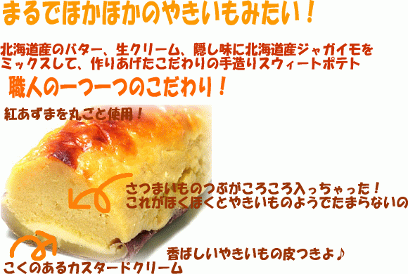| ♪ラップにつつみ、レンジで2分位、温めて、いただくといっそう美味しくいただけます。 ★常温で解凍される場合は、1-2時間置いて下さい(冬期は、2-3時間)。 室温によって若干異なります。 ※手作りの為、サイズは多少前後いたします 窯焼ポテト専用化粧箱は付属しません。 |